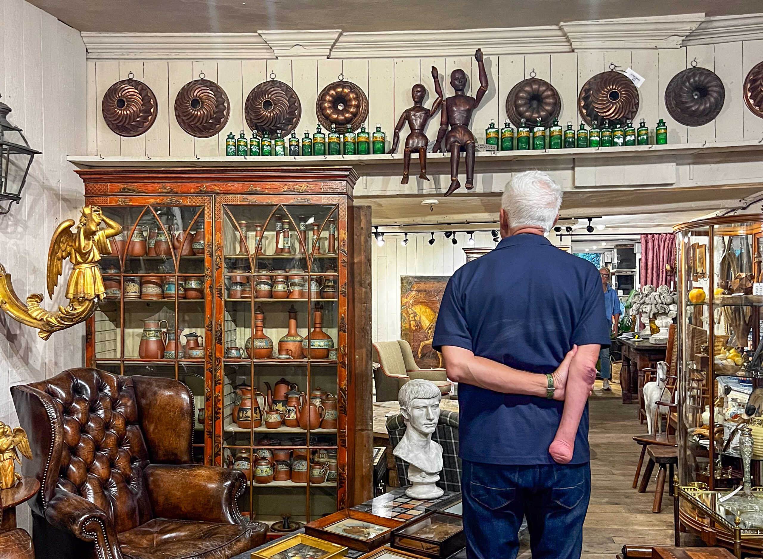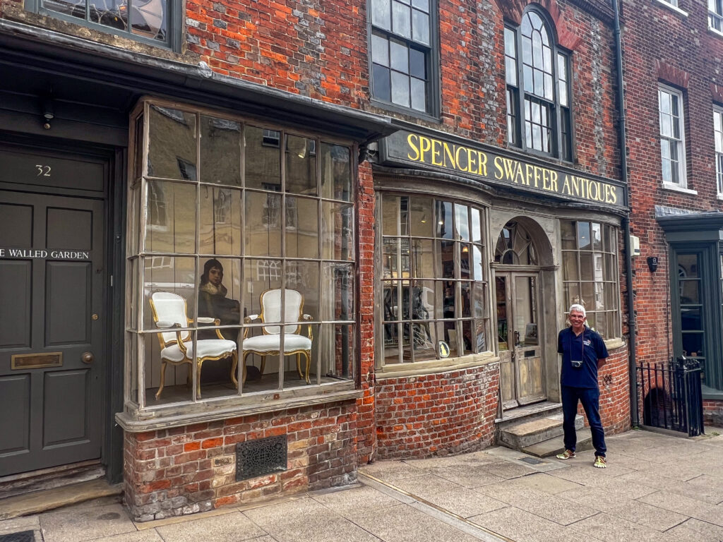 Even further down the hill– b.t.w. Arundel is very hilly – we saw a sign for Spencer Swaffer Antiques. This is the antique store that our pal Brian had made special mention of!!! so we rang the doorbell and entered a fabulous world of collectibles that were beautifully curated. To be honest, a store like that is spiritual death for John, but I was in heaven. It was gorgeous. I’m happy to look, never inclined to buy, so we’re all safe on those fronts…