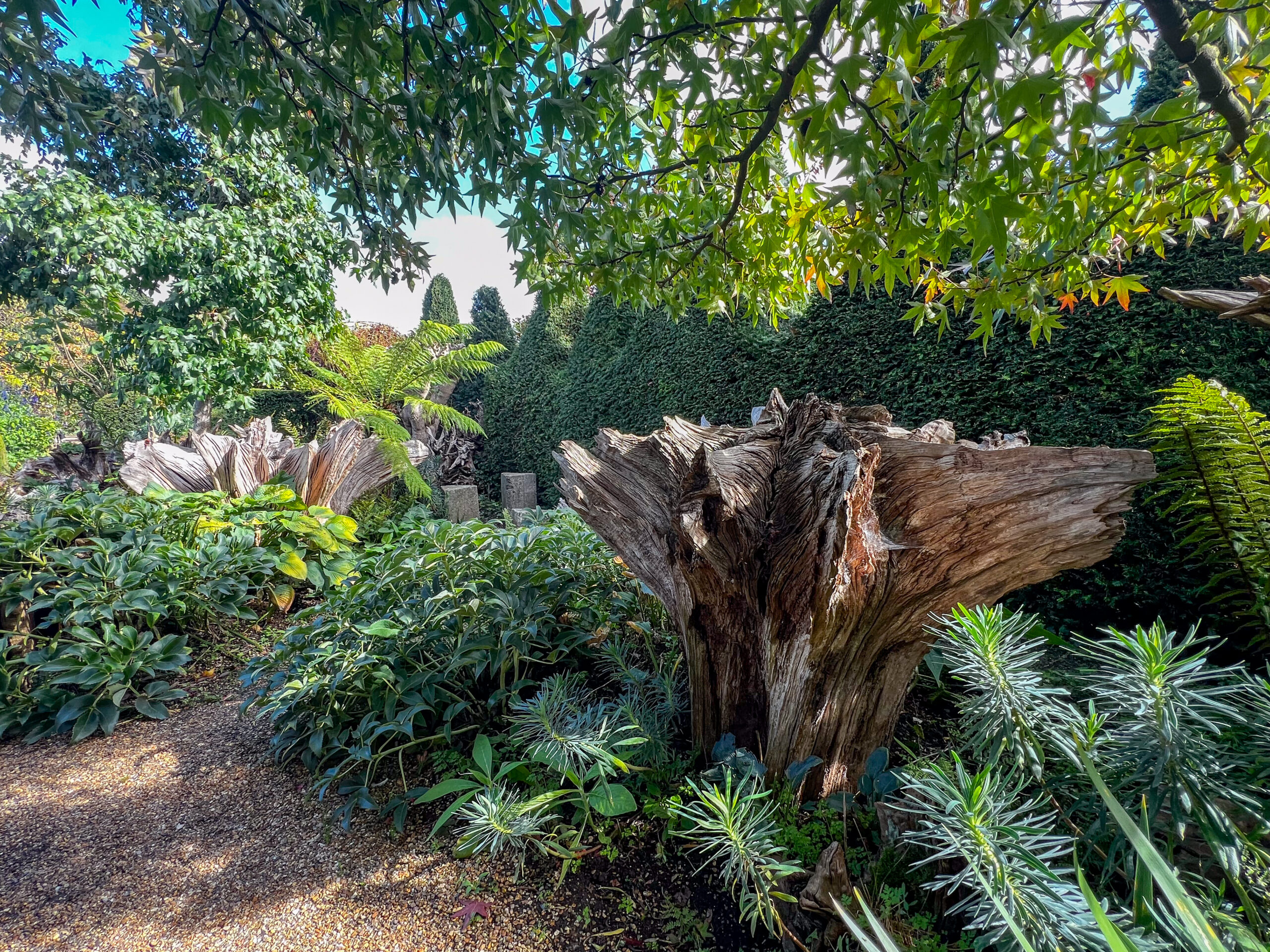 Sidebar from Patti: I love the English gardening phenom, a”stumpery”. Old tree stumps, uprooted, inverted and installed into garden beds. They’re beautiful.