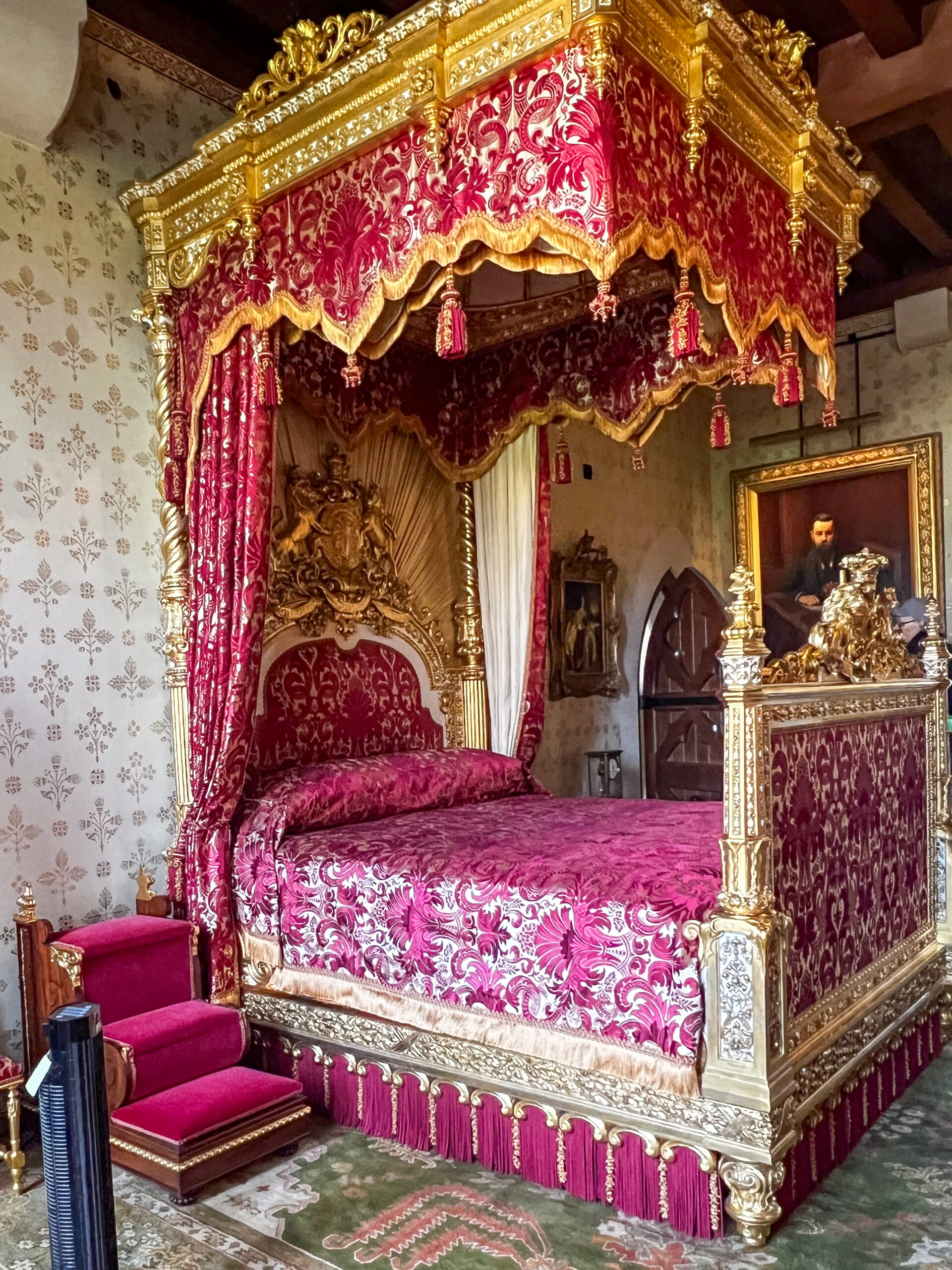 Fast forward to 1846 when Queen Victoria and her husband, Prince Albert, visited Arundel Castle for three days. Henry Howard, 13th Duke of Norfolk, internally remodelled the castle in time for her visit… The work included a suite of six rooms, built on the second floor of the south-east range at this time, and the Victoria bedroom has only been reopened this summer with massive restorations made to the fabrics and walls.