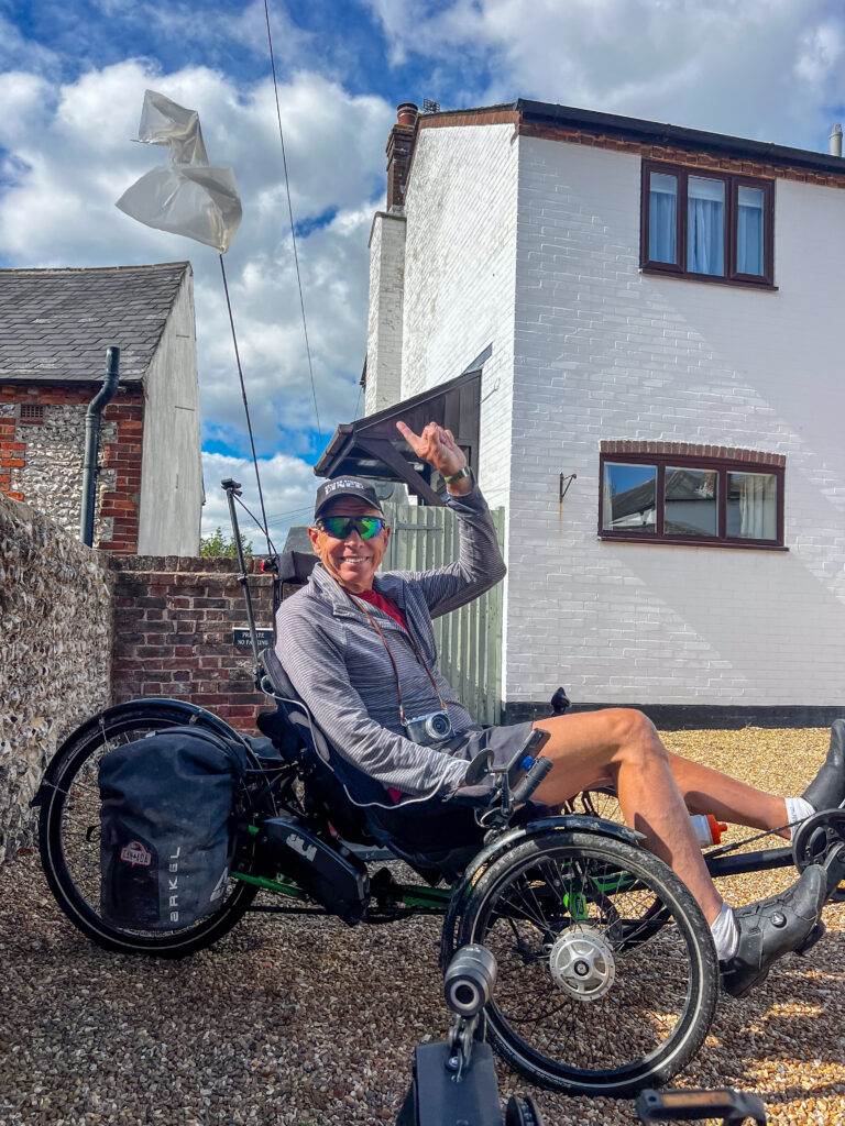 The ride north into Arundel from Seaford through Brighton was actually a little nasty, traffic-wise, and John’s phone was complaining about moisture in a connection, so we were navigating by Patti’s phone, only. Plus, it had clouded over and it was getting cold. We were happy to finally check into the ancient St. Mary’s Gate Inn (1525) (highly recommended) after an almost 60 km day, and get changed out of quick-dry polyester cycling gear into warm, dry clothes.