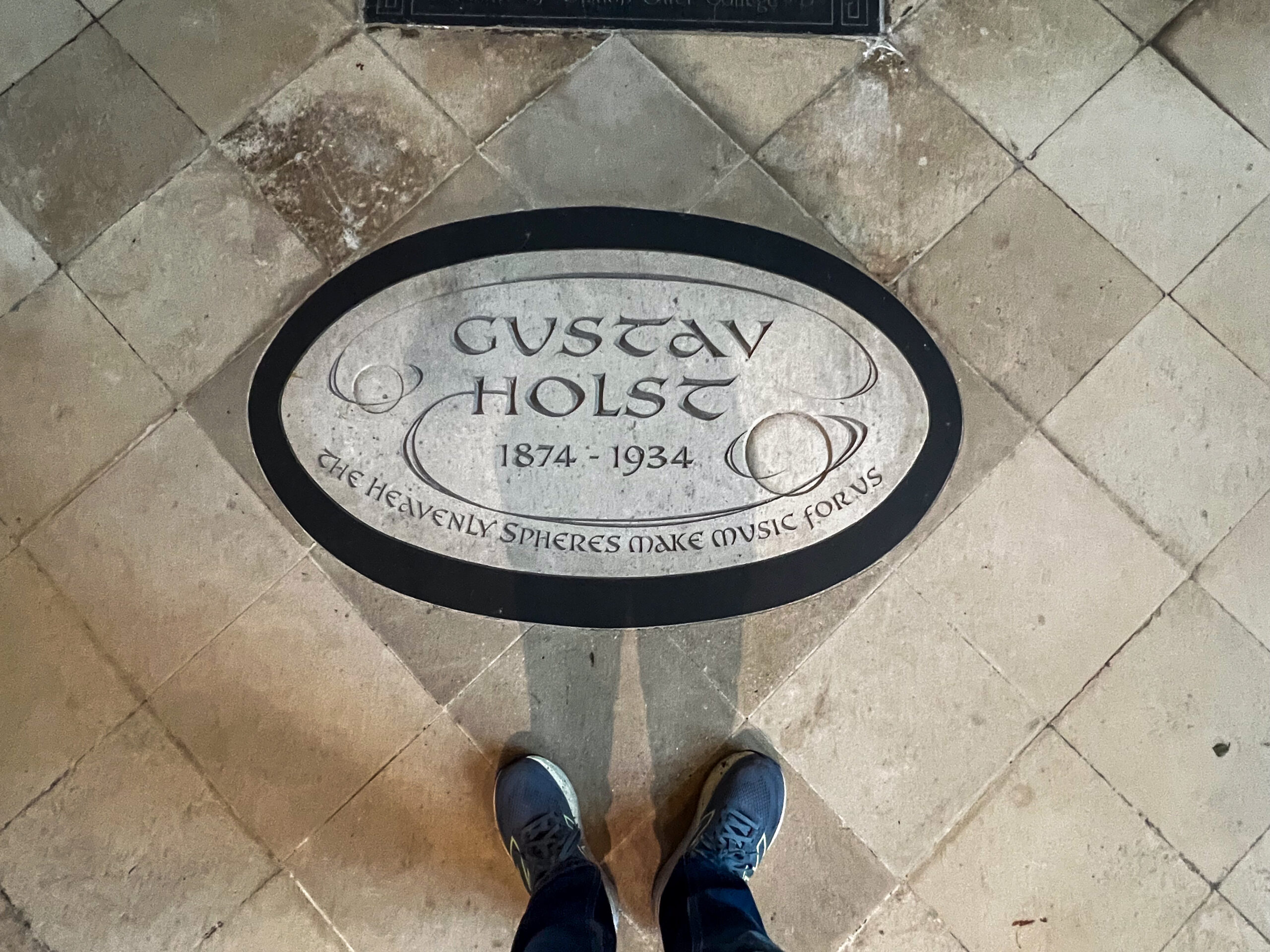 Gustav Holst‘s ashes are under a plaque in the cathedral’s floor.