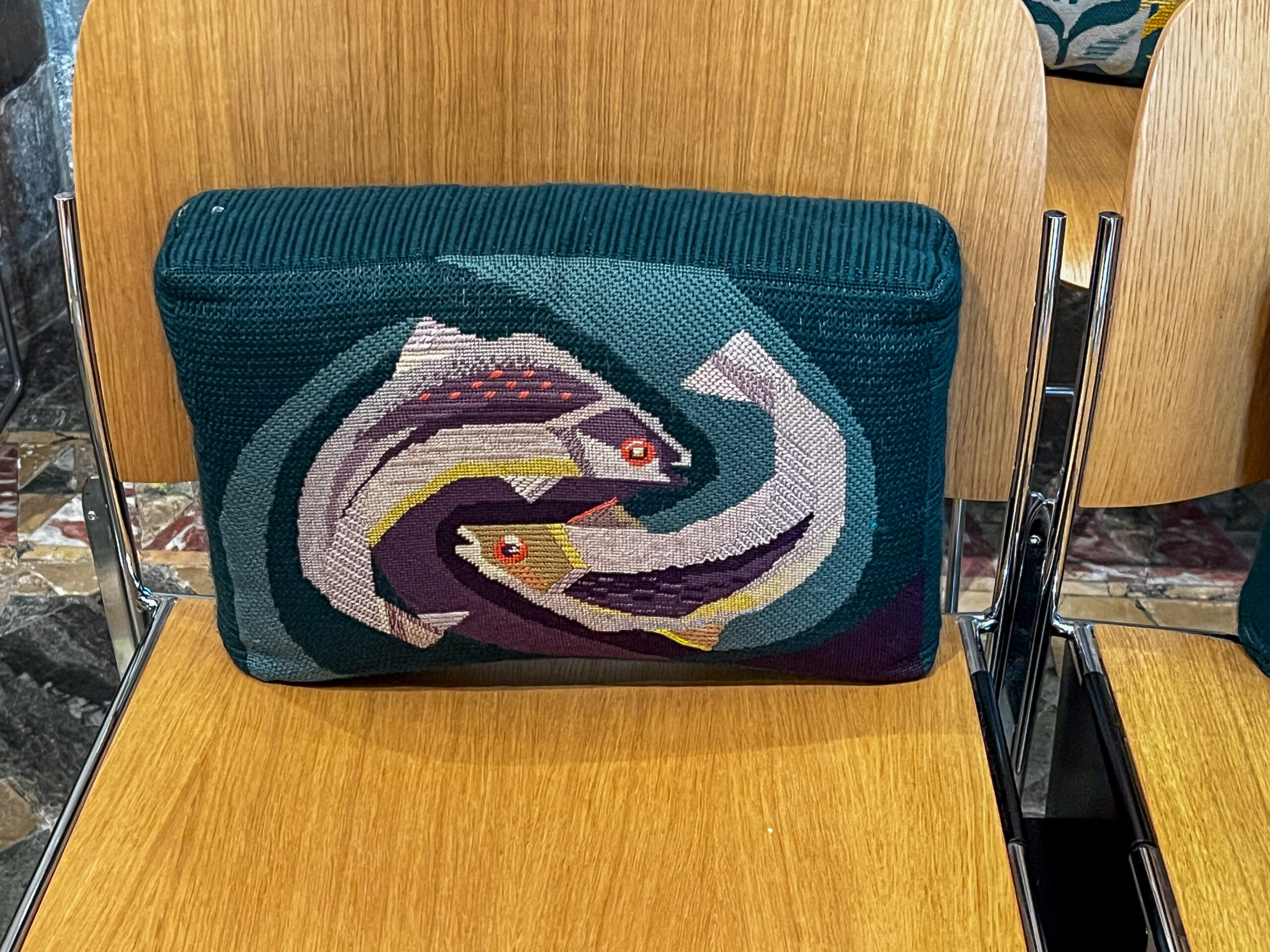 Patti also loved the beautiful embroideries (kneelers, seat cushions) created and maintained by the cathedral’s “Seffrid Guild“, featuring modern designs, intentional symbolism and a level of visual cohesiveness that is gorgeous.