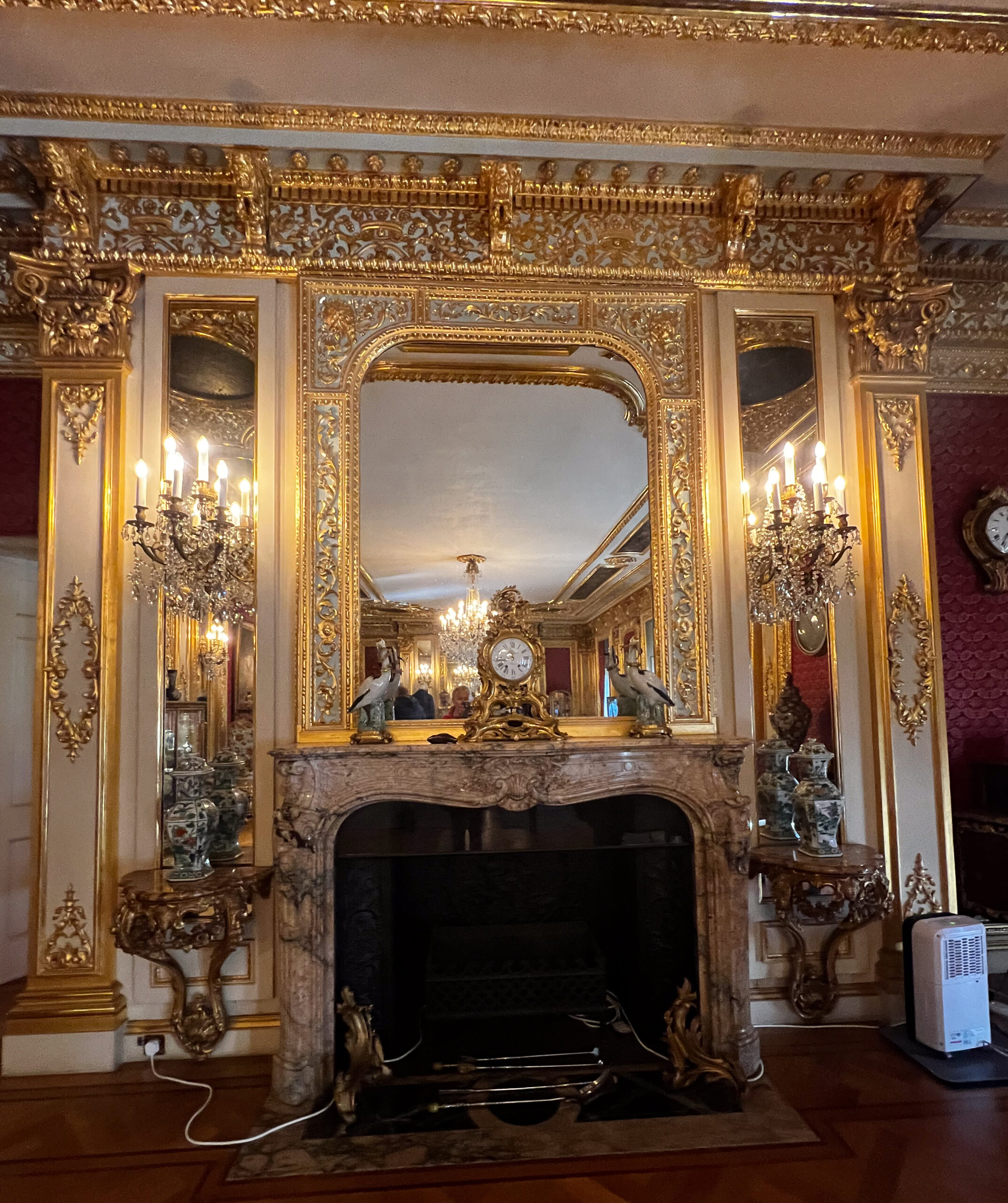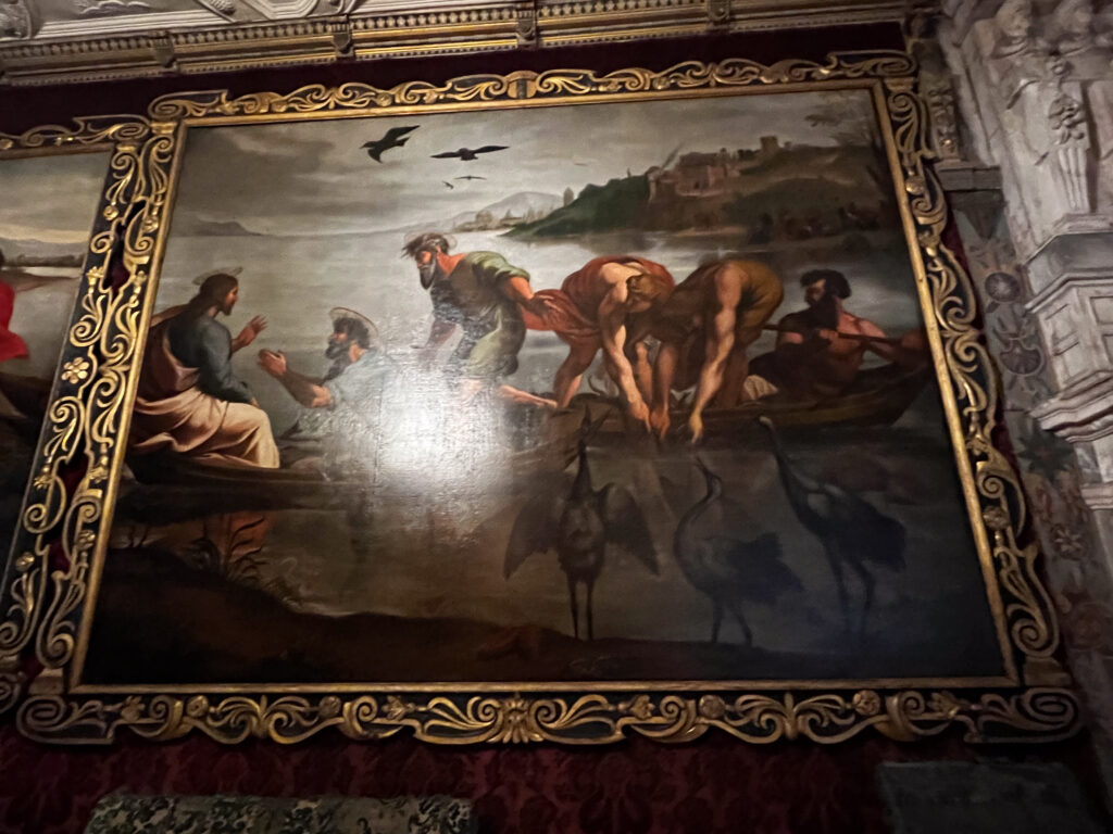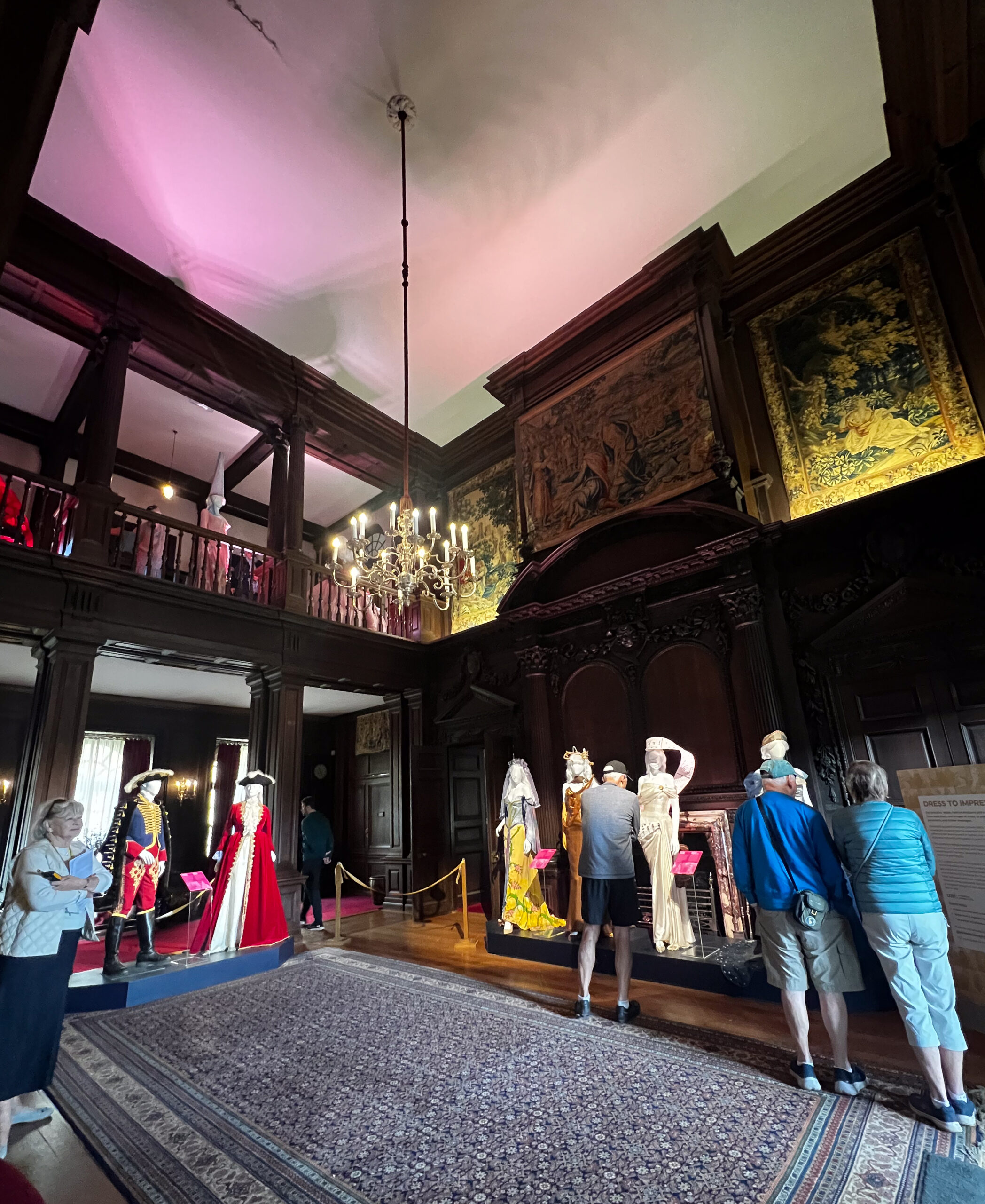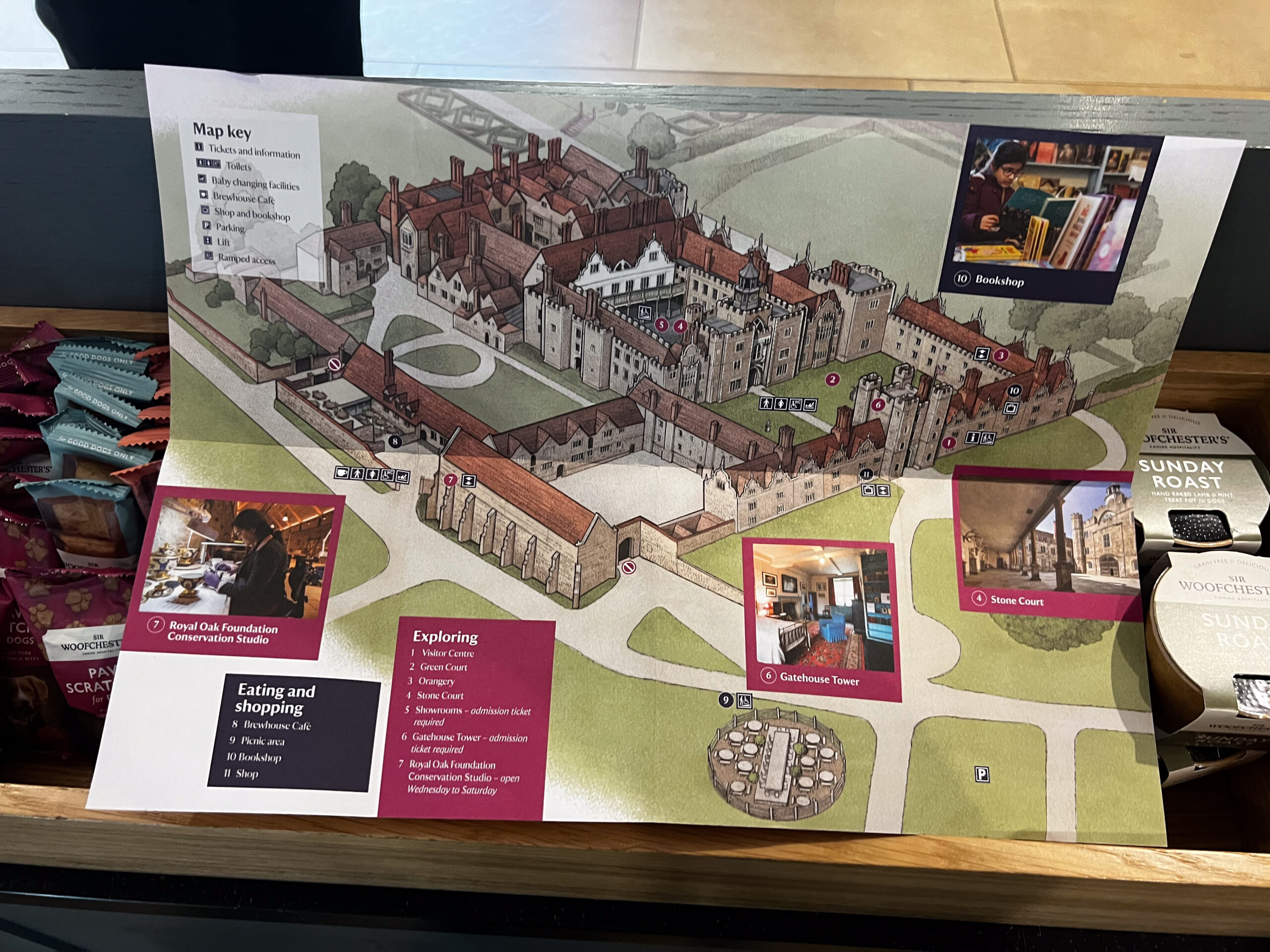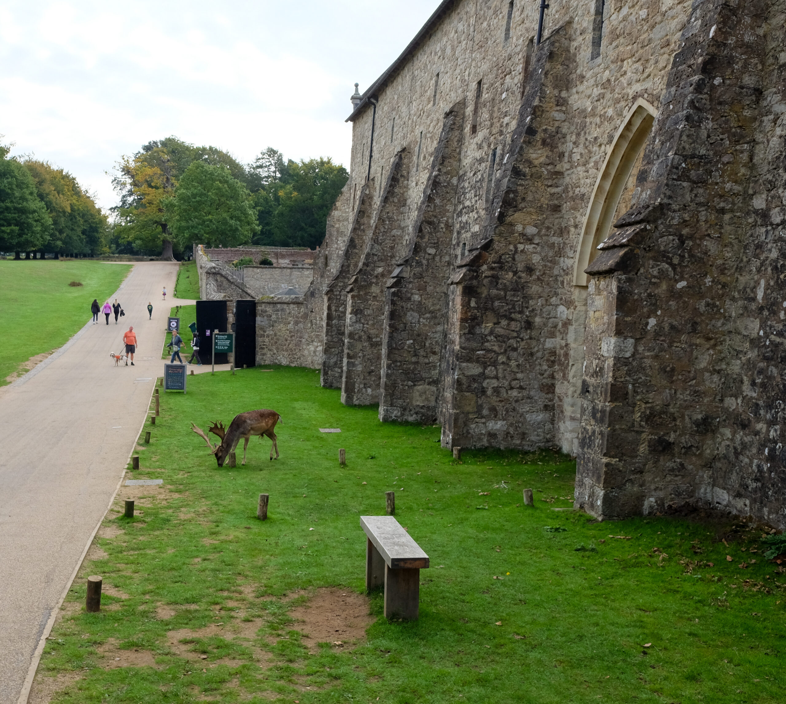 The next day, we were in for a treat at yet another over-the-top National Trust mansion, Knole, southeast of Sevenoaks in west Kent, the childhood home of Vita Sackville-West (we talked about her in a previous blog when we visited her home). Knole is one of the NT estates where it is a very, very good idea to pre-book your ticket. It’s popular not only with tourists, but with locals who love to visit the huge grounds to walk with family and with their dogs. The estate has been in the hands of the Thomas Sackville family since 1605 and there are still Sackvilles living on the estate. You can see where their (private) apartments are in a photo in the gallery, below. There are very tame deer grazing on the grass along the path that leads you into the home. Leopards are a part of the family crest, and you can see leopards in the decor throughout the house. Knole is especially reknowned for the original fabrics on the upholstery, all behind glass, of course, to preserve them. Hanging casually on the walls in one of the galleries are a series of Raphael cartoons, the preliminary sketches for a series of tapestries that would eventually hang in the Sistine Chapel. (!!!) Knole is a truly grand estate, and also highly recommended. See the photos, below.