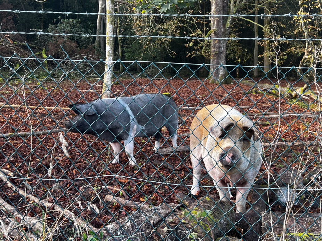 Continuing east from Alton on a route suggested by our new favorite safe cycling App – cycle.travel – we had an average length ride ahead of us, only 56 kilometres. It was a beautiful sunny morning, cool, but not cool enough to require mitts. We enjoyed our brief encounters with some local animals: a couple of pigs in a penned area on the edge of a forest (were they truffle pigs? I don’t know), and Patti shared the road with some goofy juvenile partridges for a while. We’ve seen many domestics animals, of course: sheep, cattle, horses, ducks. Wildlife, like deer and birds. And, sadly, roadkill like possums (or were they badgers?), lots and lots of quail, and a very small fawn.