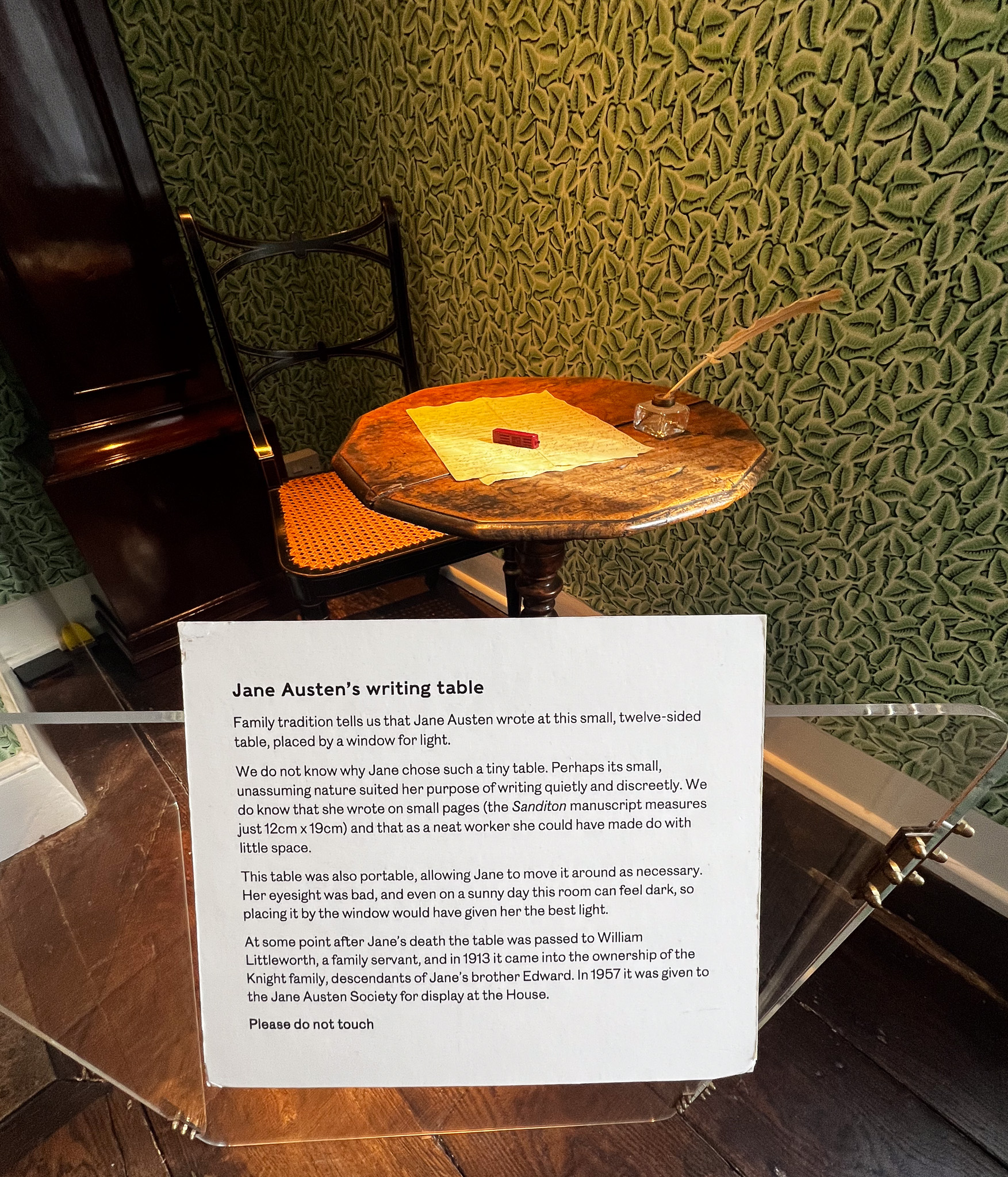 I forgot to mention in the last post about Jane Austen’s home in Alton, that that is where her very modest writing table is. A true shrine for Austen fans, there’s a photo of it in the gallery attached to this post.