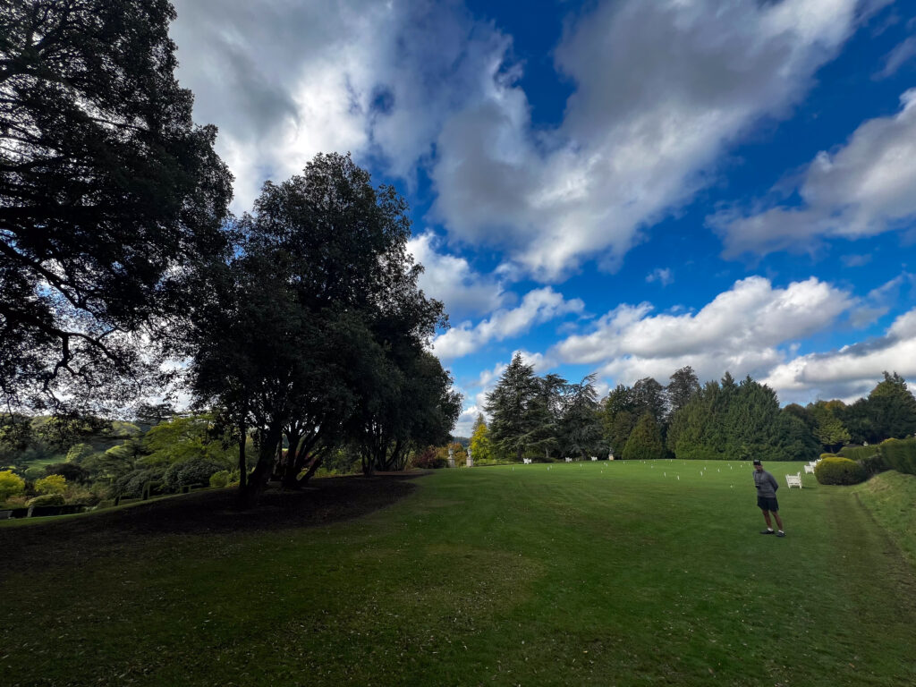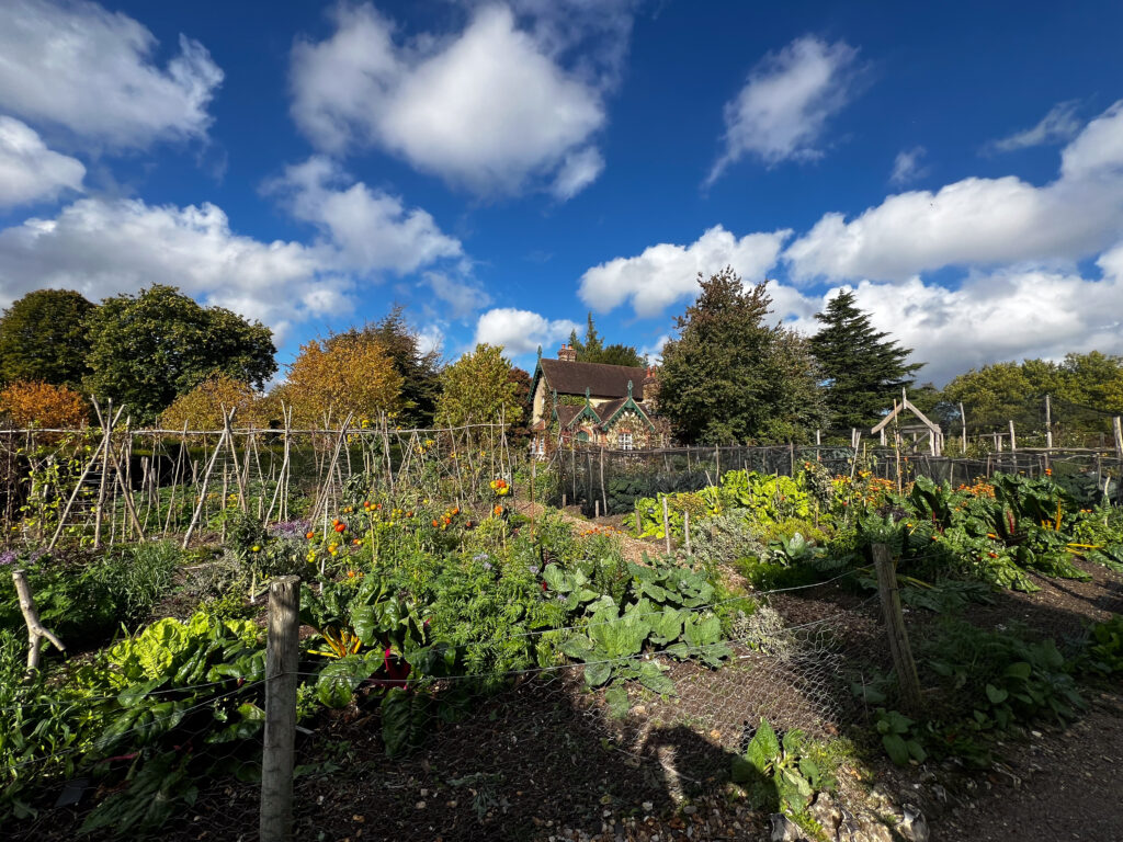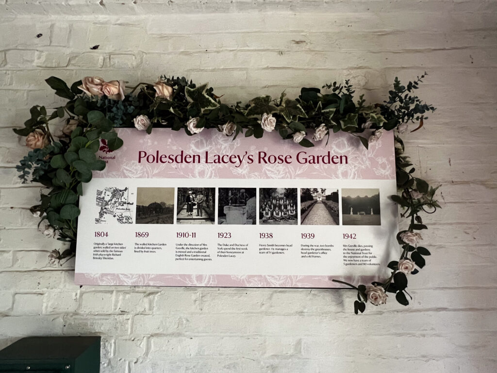 Our National Trust treat for the day was to be Polesden Lacey. It’s a beautiful estate in Surrey, featuring miles and miles of land (as in, they owned anything they could see), huge ancient trees, a stunning mansion, an enormous croquet field, formal and rose gardens, and a vegetable garden with gardener’s cottage. There is a beautiful story about its owner, Margaret Greville, 1863-1942, that I’d highly recommend checking out. Greville and her husband had no children. She died in 1942, and is buried in the grounds of Polesden Lacey.