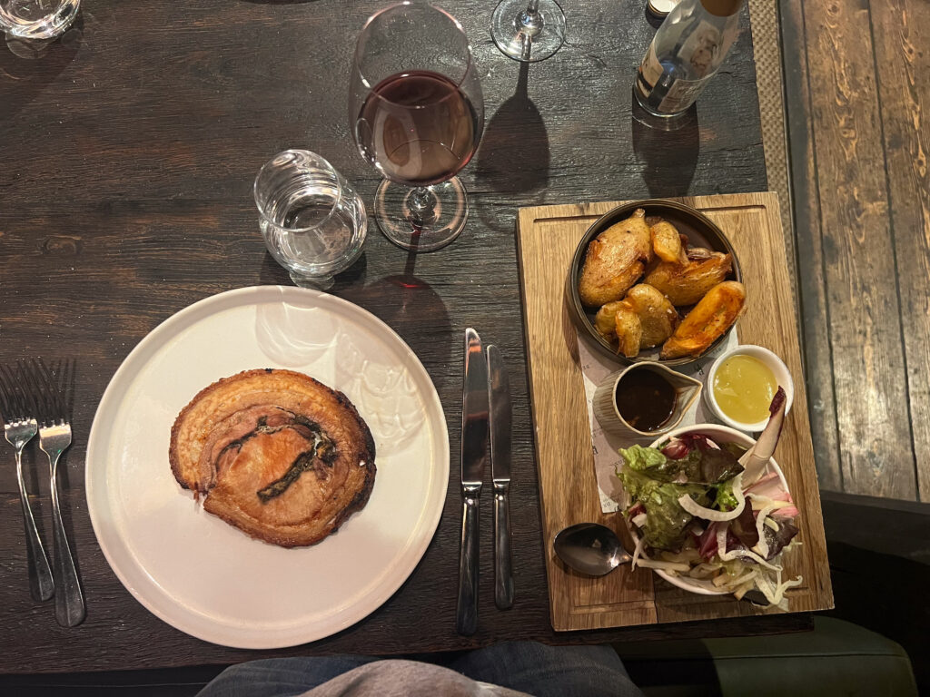 We hoovered a gorgeous dinner (pork belly!!!) at the George and Dragon pub across the street and enjoyed watching every child in the pub come to visit and cuddle with the three dogs who were sitting dutifully and quietly at their masters’ knees, beside us. Photos, in the gallery attached. It was a really wonderful meal and I am a huge fan of #dogsinpubs.