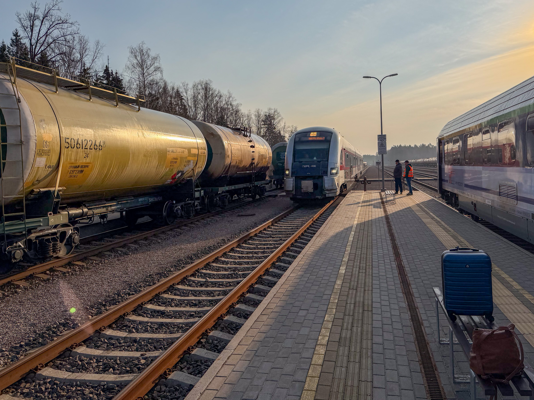 The hotel made us a substantial box breakfast and we headed out to catch our 7:00 AM train north and east. We had to change trains in Mockawa, Lithuania, because the width between the rails (rail gauge) increased by a few centimetres from the European standard width to the old Russian standard. Then a pleasant three hour ride to the capital of Lithuania, Vilnius.