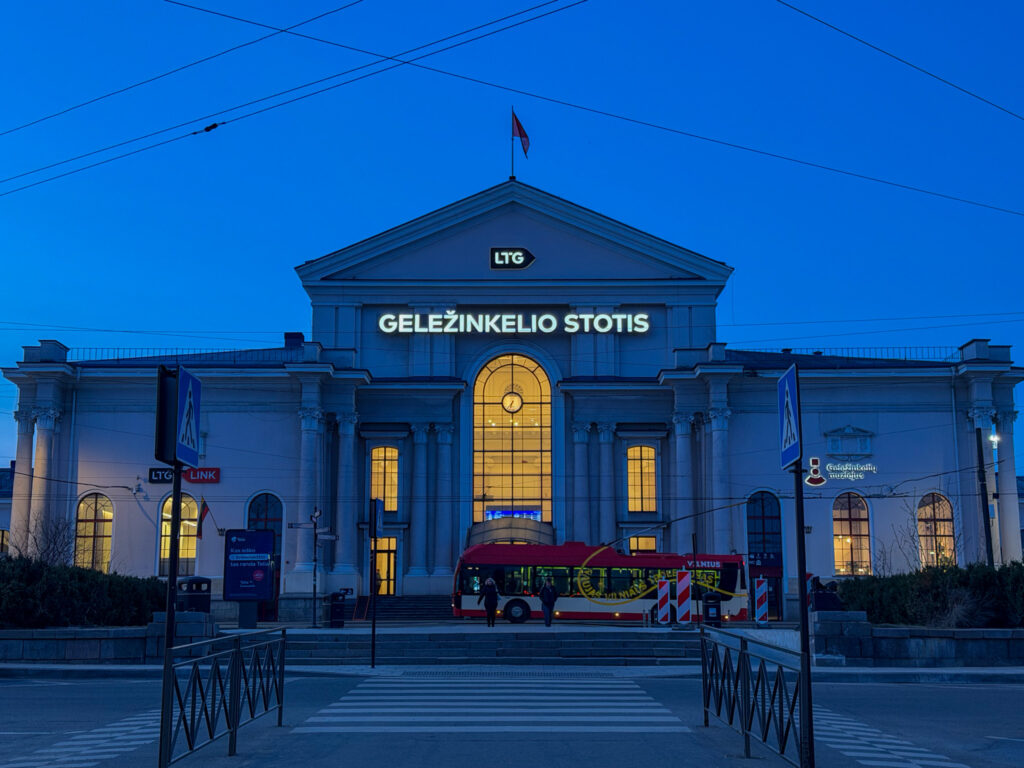Yesterday morning in Suwalki our hotel made us an incredible box breakfast to eat on our early train. Well – our Vilnius hotel did not come through in the same way. Only a small foil-wrapped cookie. That’s OK, though, we still had the second sandwich leftover from our good friends in Suwalki! They spoiled us.