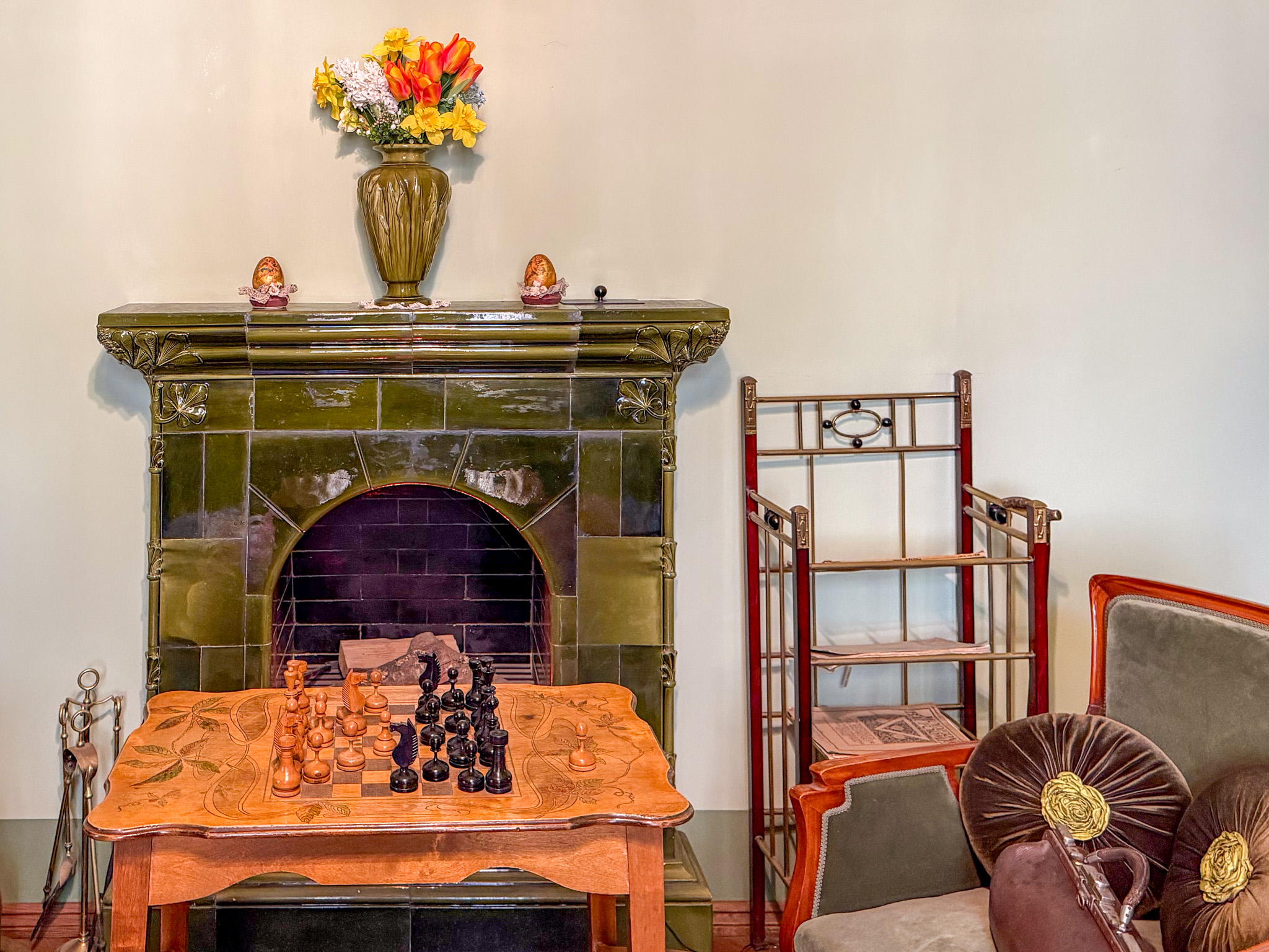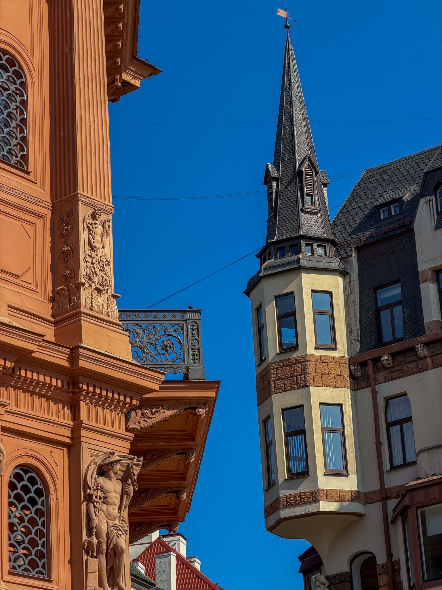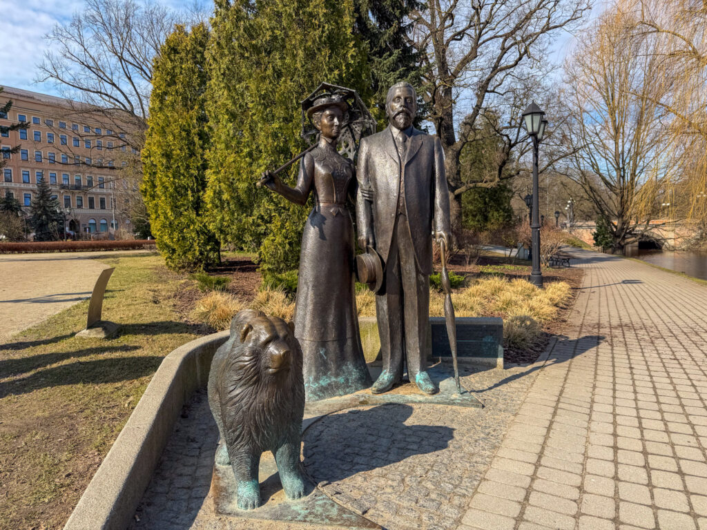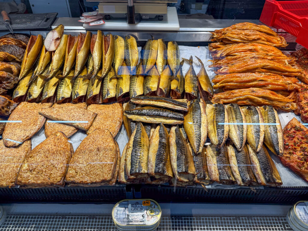 Next morning we froze as we walked to the market to find breakfast. The market is housed in five repurposed zeppelin hangers not far from the station. We were a bit early – most of the stalls were still setting up. We grabbed a coffee, then set out across the wide Daugava River bridge to the Railway Museum. We enjoyed the indoor displays, model railroad, and outdoor collection trains. Then – begrudgingly – we trudged, coldly, back across the bridge to find the Art Nouveau.
