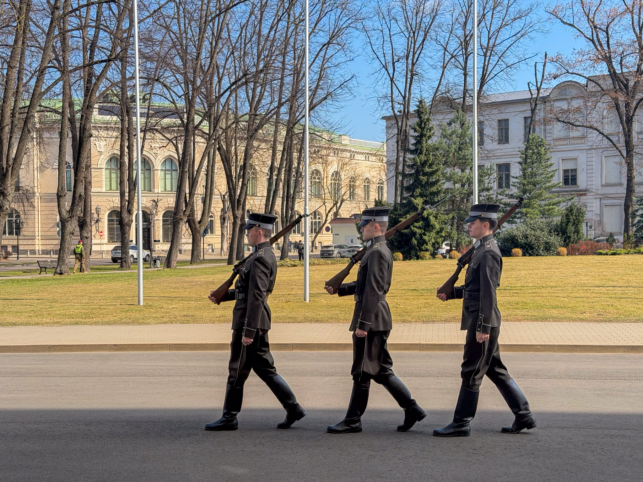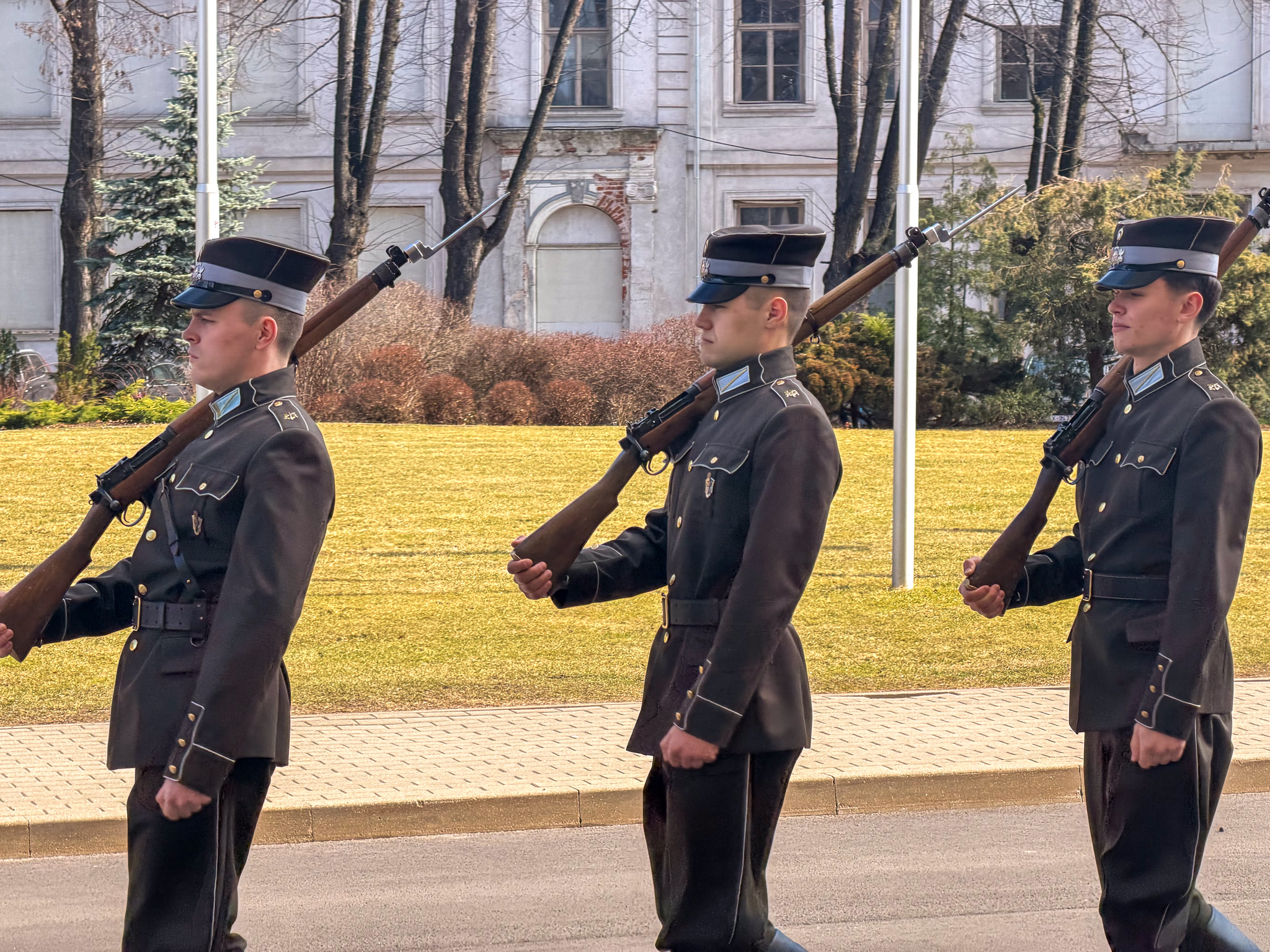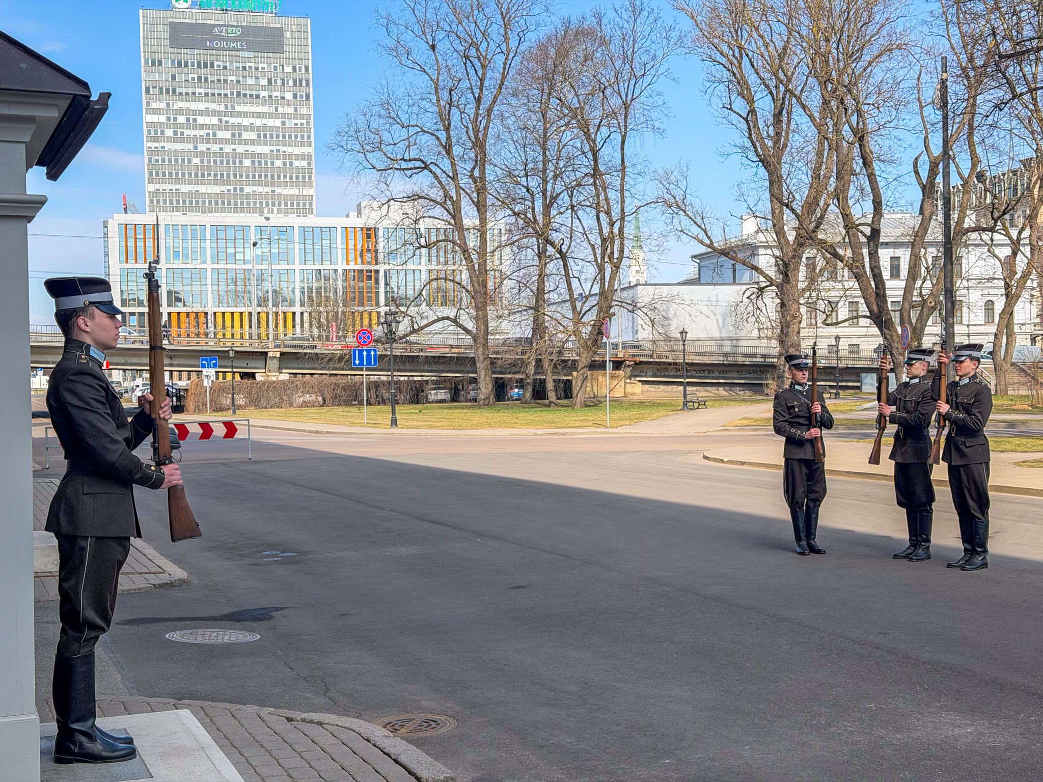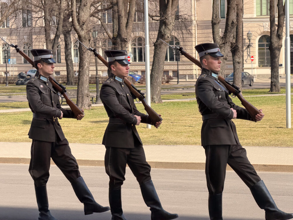 Like many European cities, Riga suffered badly during and after the second world war. Over 900,000 citizens (mostly Jewish) either left or perished. Much of the Old City was destroyed and has since been restored. The skyline is highlighted by many old and beautiful church towers. Ben and I toured most of streets, and were fortunate to have a private viewing of the Palace’s Changing of the Guard. Being Monday, most stores and all of the museums were closed. That, and being off-season and very cold, gave the Old Town a rather deserted feeling. We were assured by our coffee shop server that Riga in the summertime is jammed with people, especially when cruise ships land at the nearby docks.