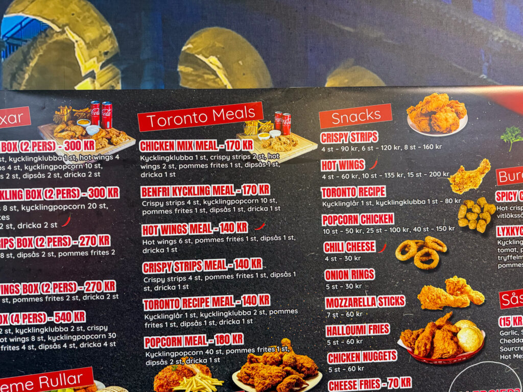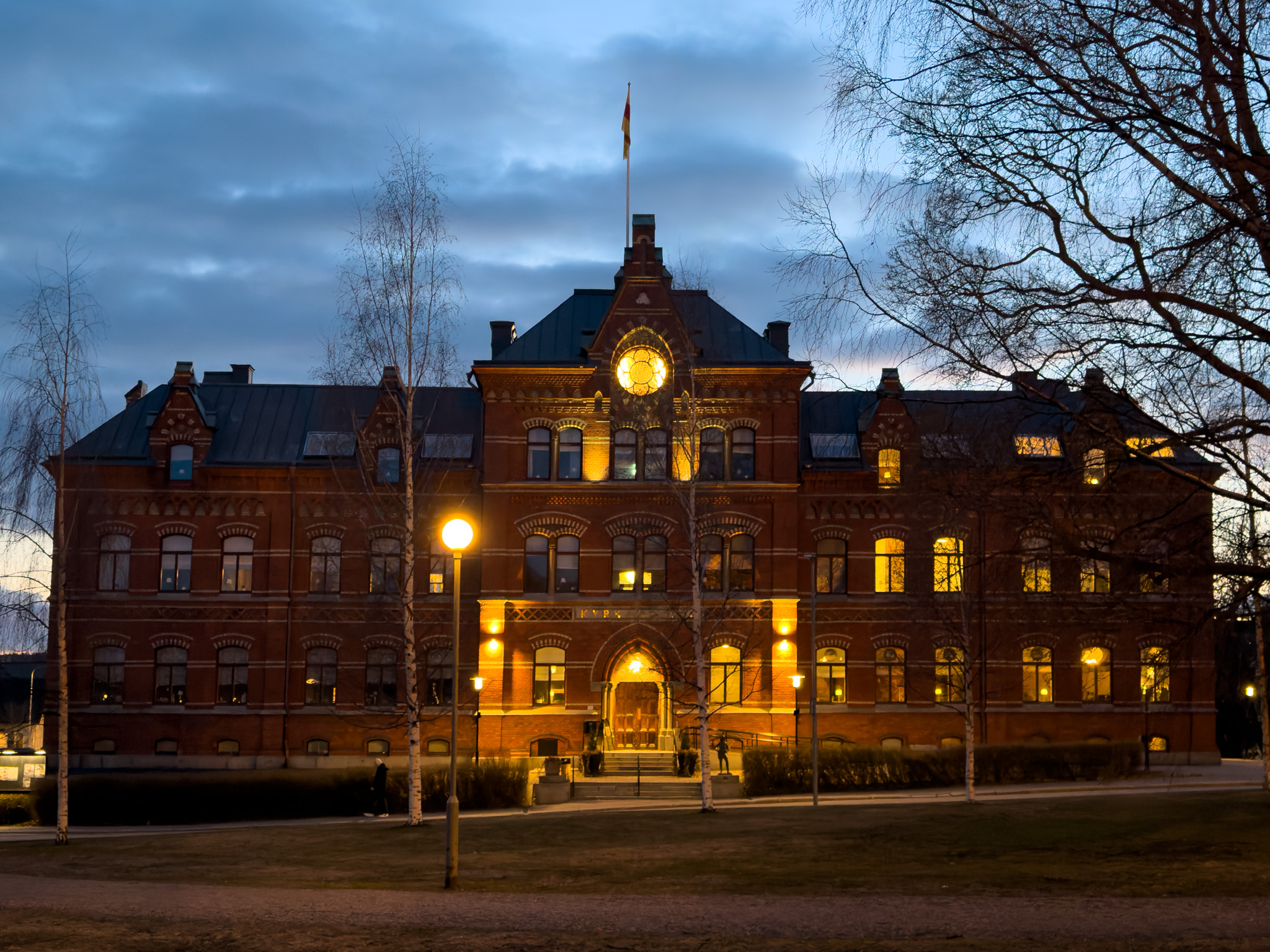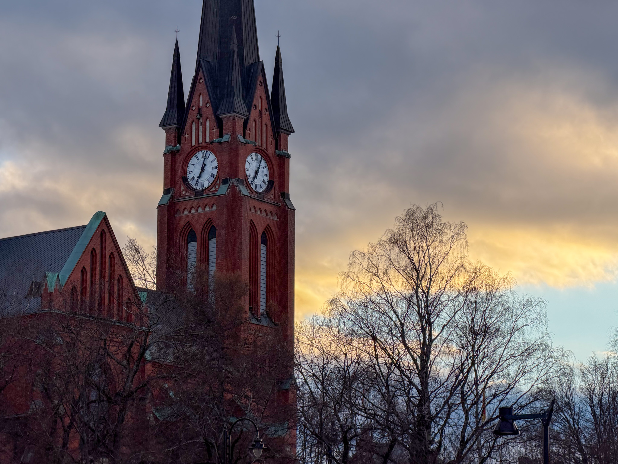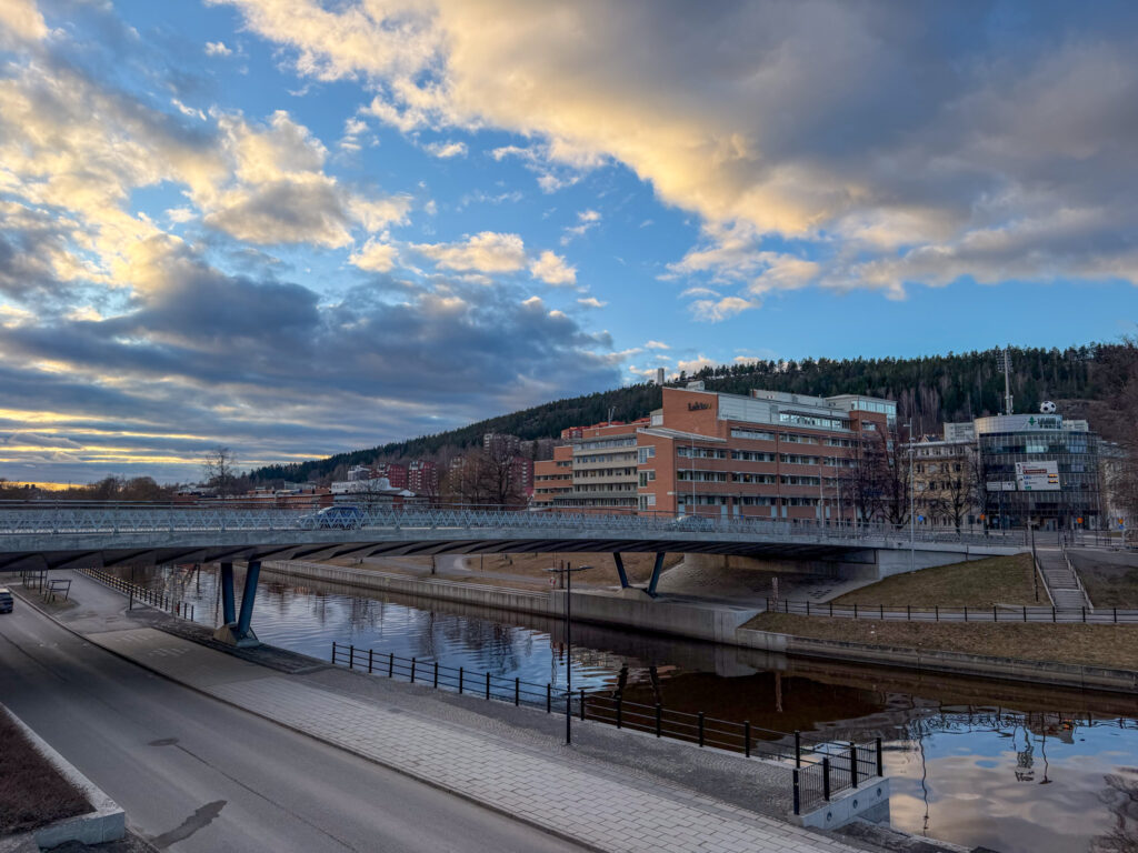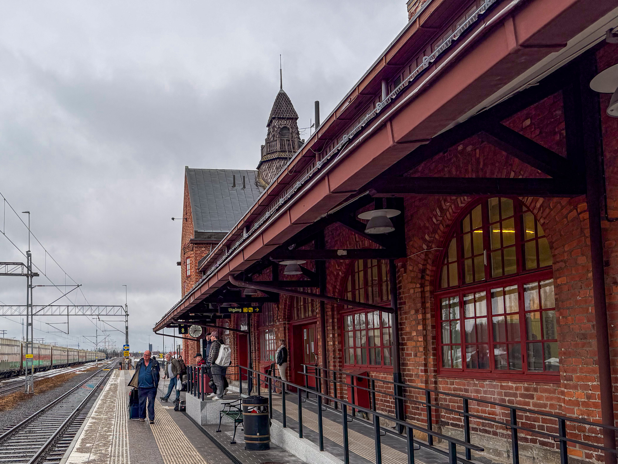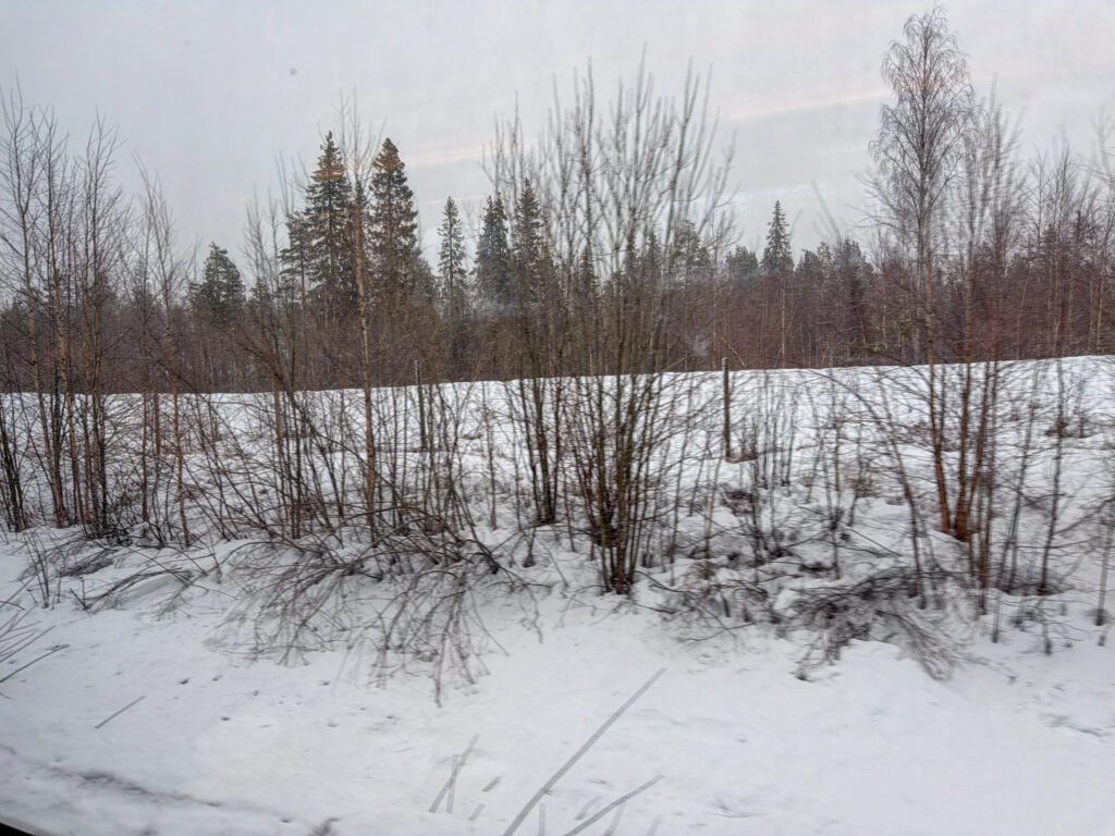 Ben and I boarded the train south from Haparanda very early on a cold cloudy morning. Within a few minutes the train was travelling through a thick snowstorm. We changed trains after about an hour in Boden, heading south towards Umea. Not very much to report. Lots of trees and lakes. Umea was a good spot to grab a lunch as we waited for the next connection.