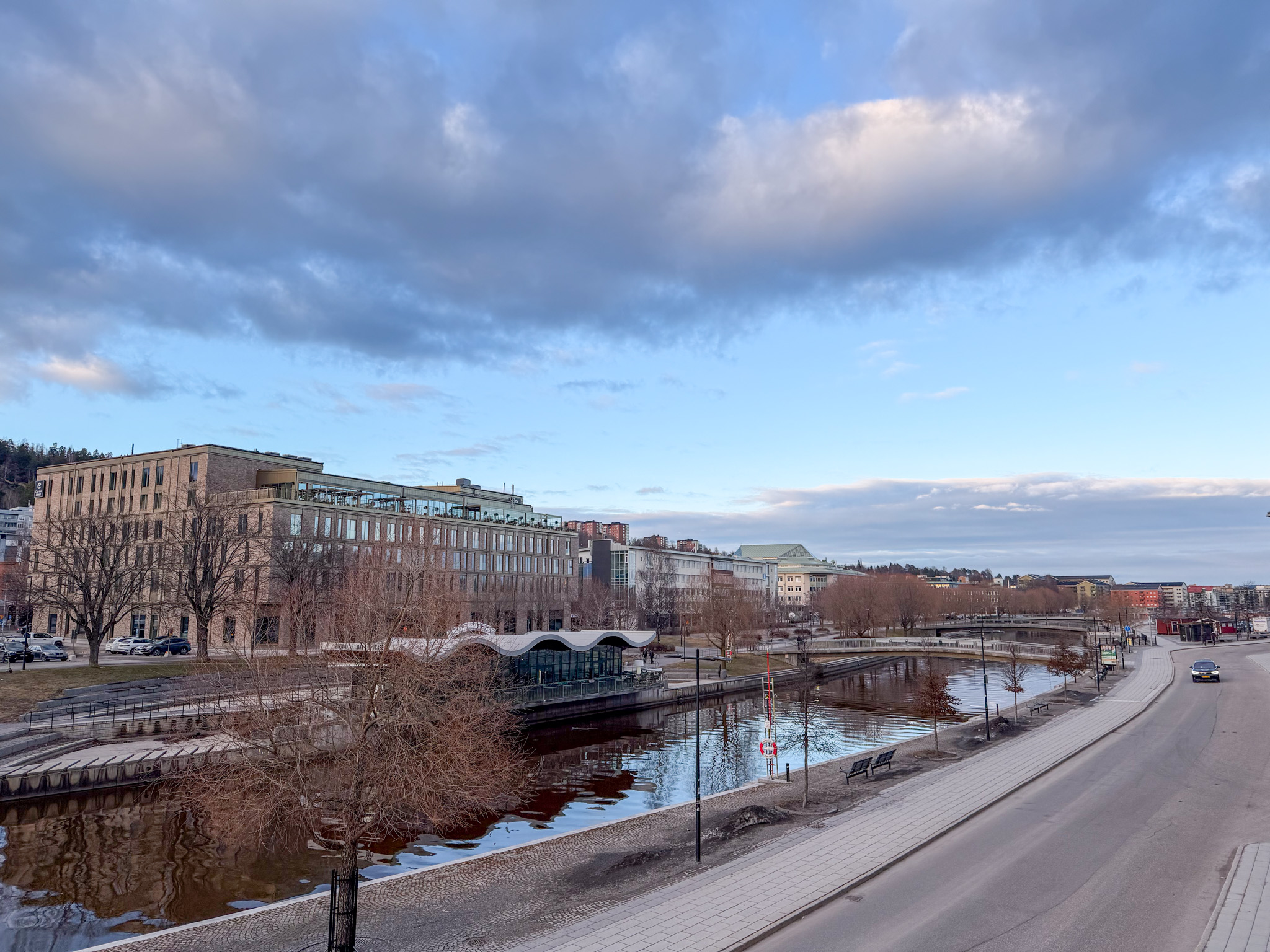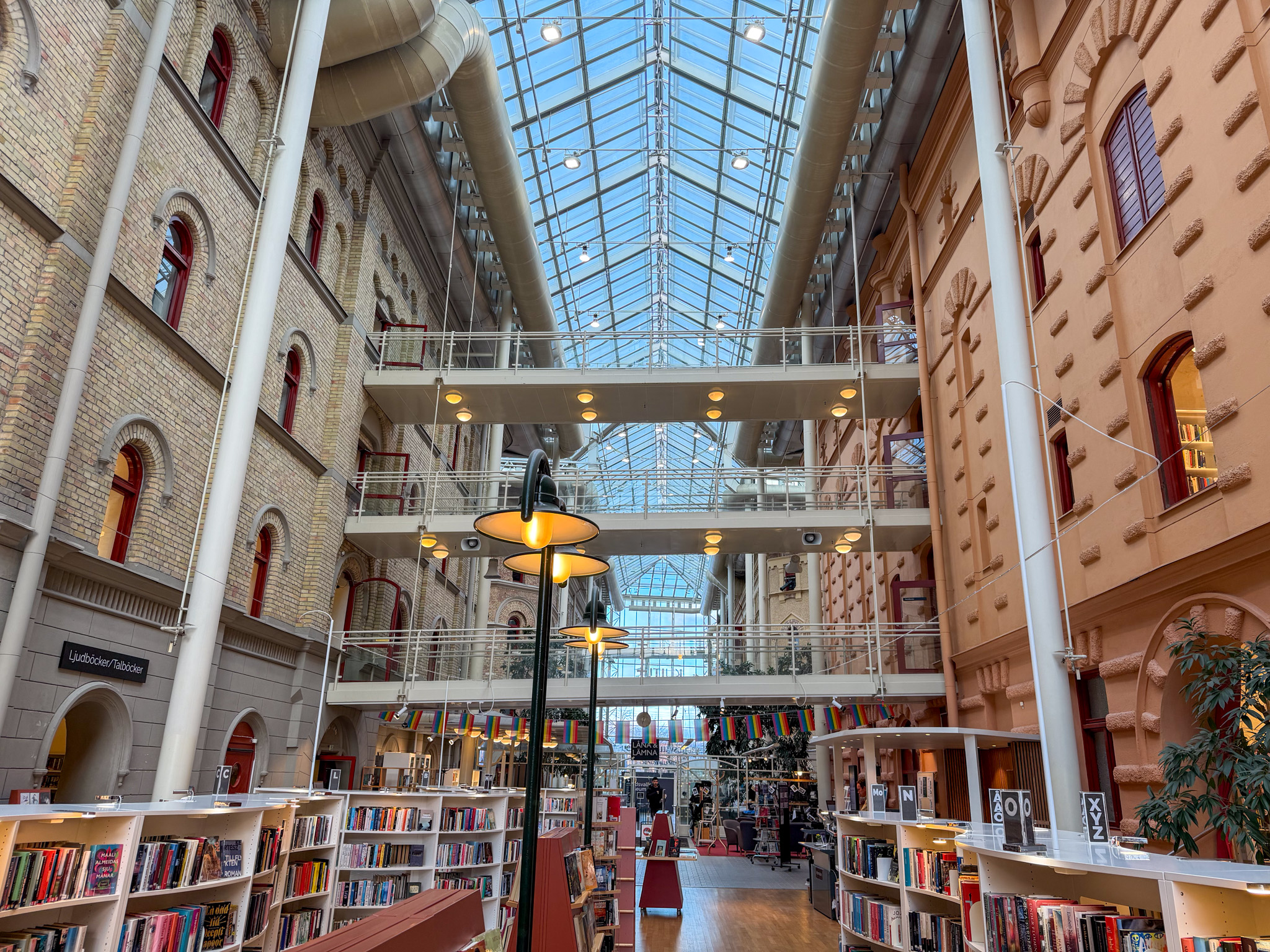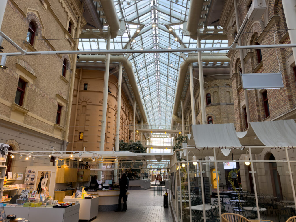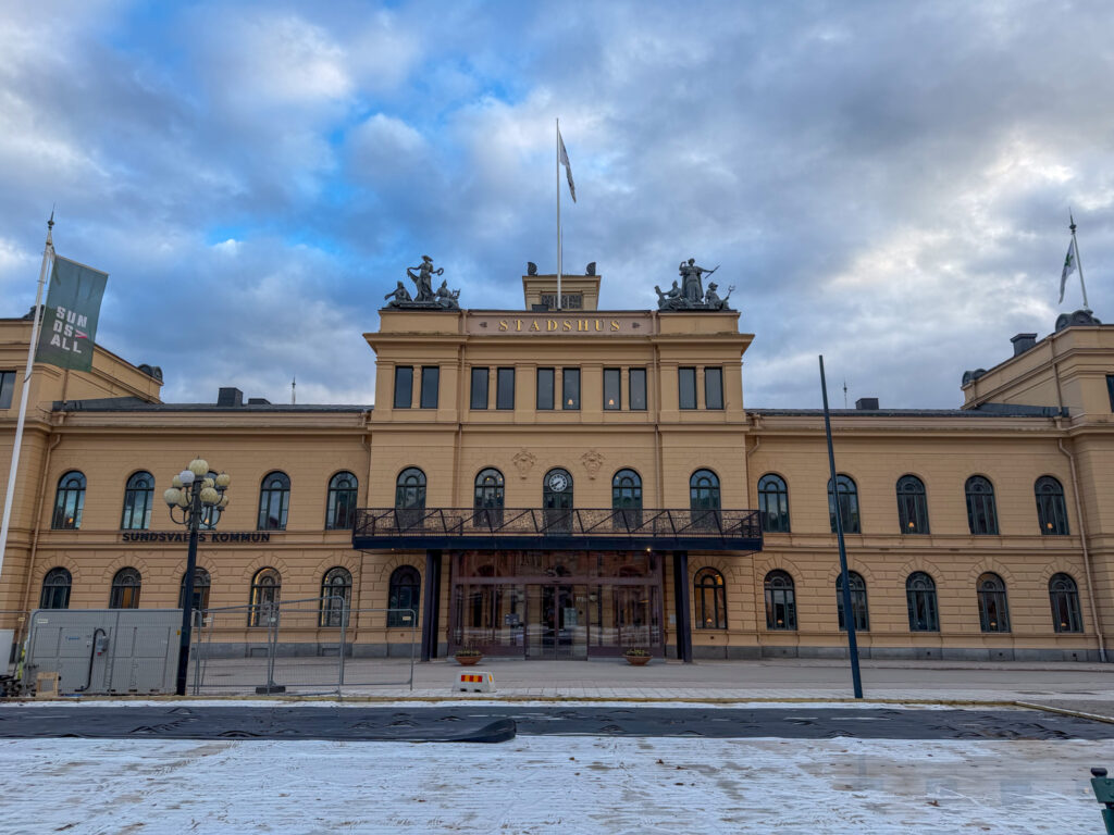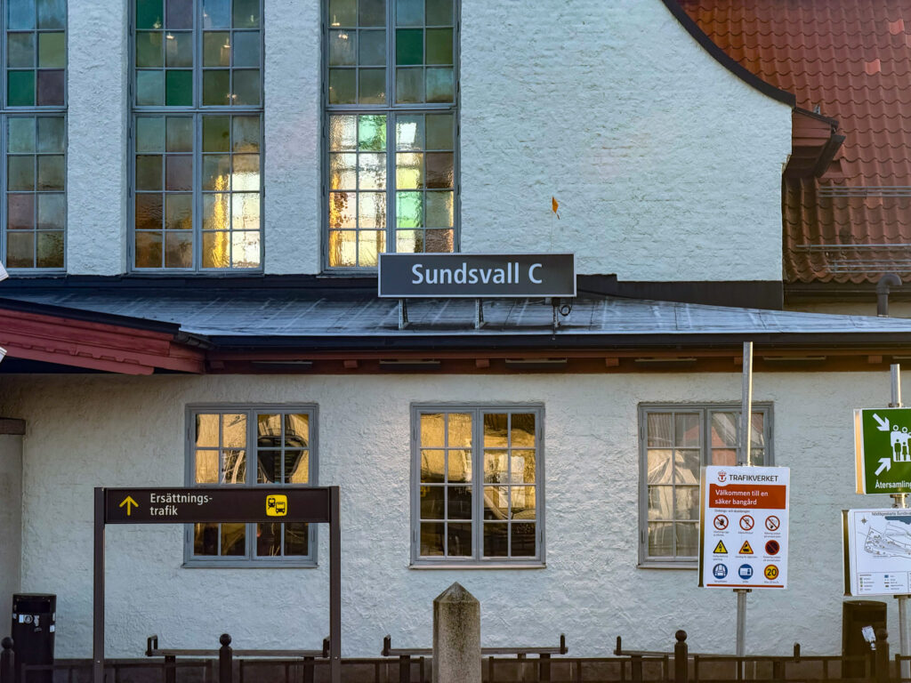 Our next train was held up for at least an hour as a broken down locomotive ahead of us was moved off the single track. Finally we arrived in Sundsval for our overnight. The architecture was quite beautiful, with clean lines and consistent four to five storey streetscapes. Very Parisienne. Notable was the glass covered galleria over the city museum and library.