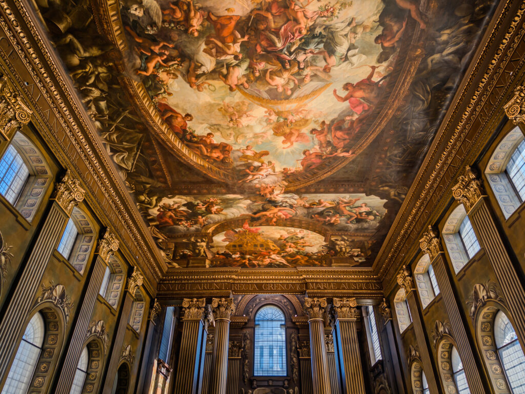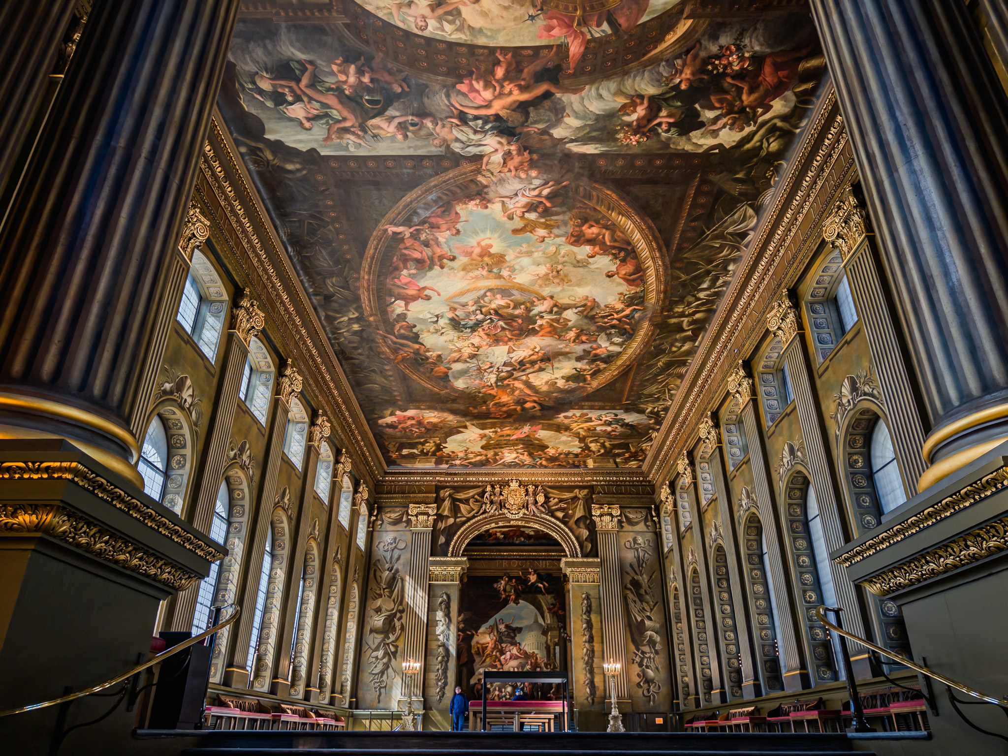 After the reign of Henry VIII, the palace fell into disrepair and was destroyed. King Charles II built a section of a new palace which remains today. Years later, William and Mary hired Christopher Wren to create a Naval Hospital, mirroring the Charles II structure in the shape of a large horseshoe. The centre of the horseshoe was left open to give the Queen’s House (Mary’s residence) clear view of the Thames. The Naval Hospital has been repurposed over the years, and now houses officer training facilities, a Naval museum, and a music faculty. The Painted Hall has one of the most splendid painted ceilings in Europe.