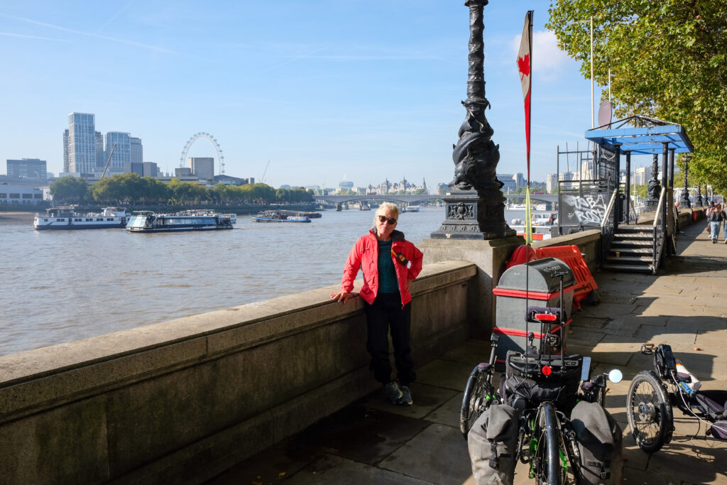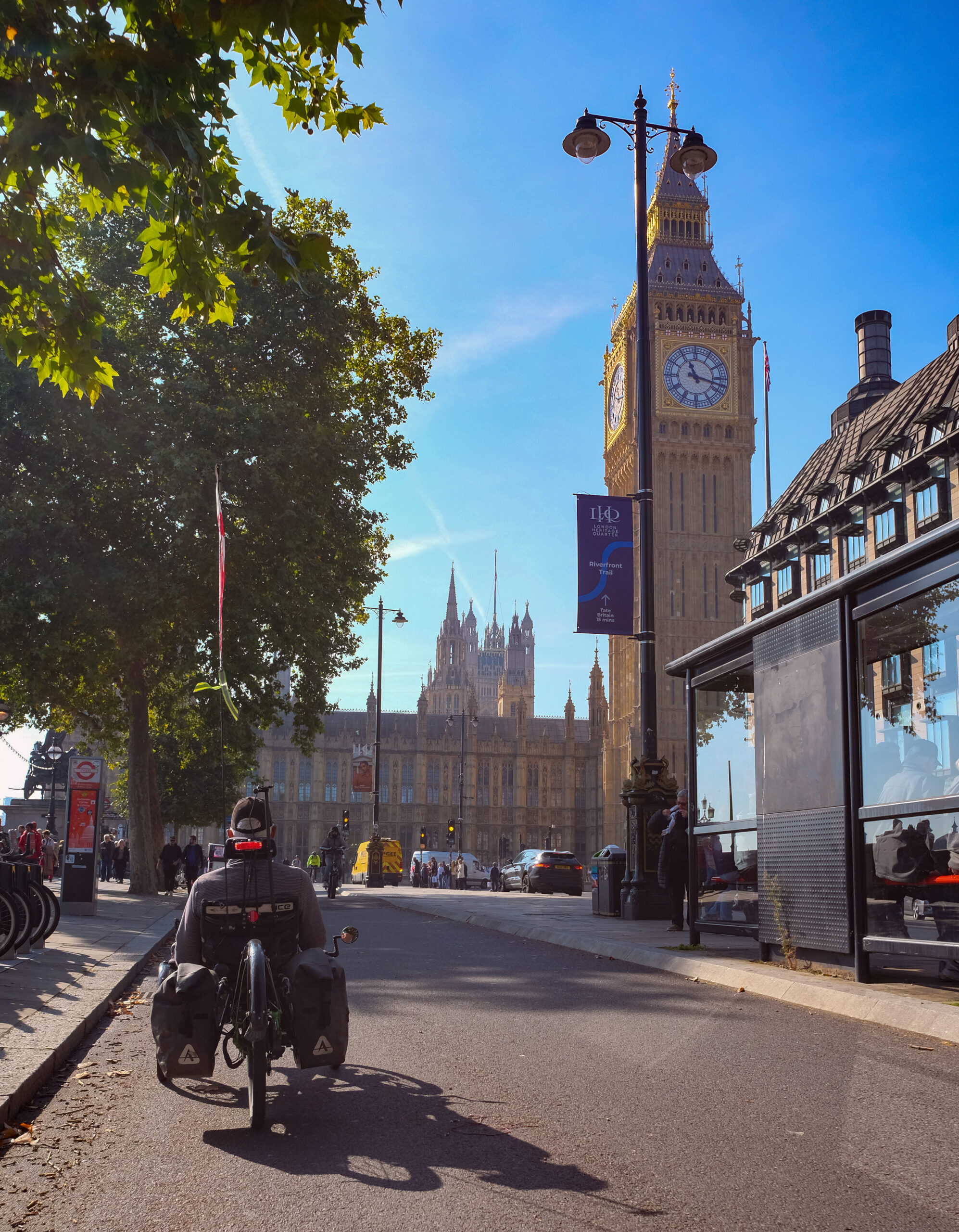 We were very excited about our route for Monday September 29th: 46 kilometres right through the centre of London, past Westminster and Buck House and Primrose Hill, and on to Finchley in North London where we had reserved a locker to store the bikes in until Spring 2026 when we return to cycle to – possibly – Edinburgh.