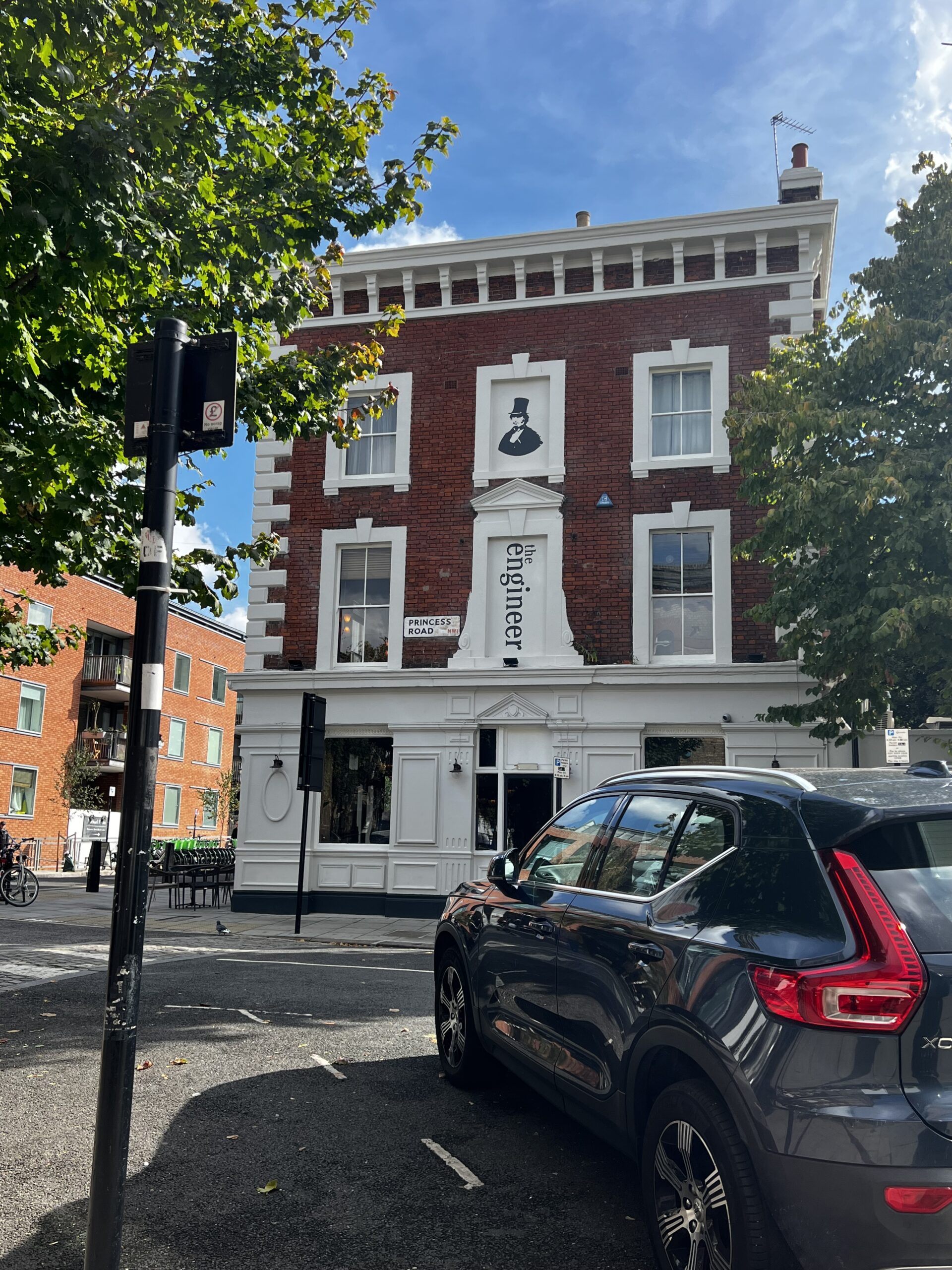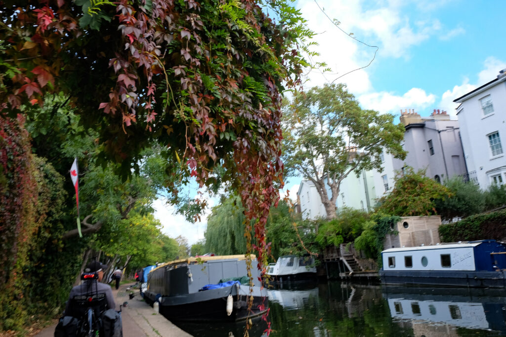 The route then put us on the towpath for the Regent’s Canal which is lined with beautiful residences and filled with narrowboats. It was peaceful and pretty and went on for miles! We stopped for a coffee and split a sandwich in the blistering sunshine in the Primrose Hill neighbourhood. A few miles further we arrived in Finchley, North London and checked into our family-owned guesthouse in a quiet neighbourhood. The owner’s son helped John finagle the bikes into a side garden behind a secure gate. We unpacked and went for a stroll to check out High Road, just in time to see throngs of school kids in various school uniforms happy at being released for the day. Dinner, and bed.
