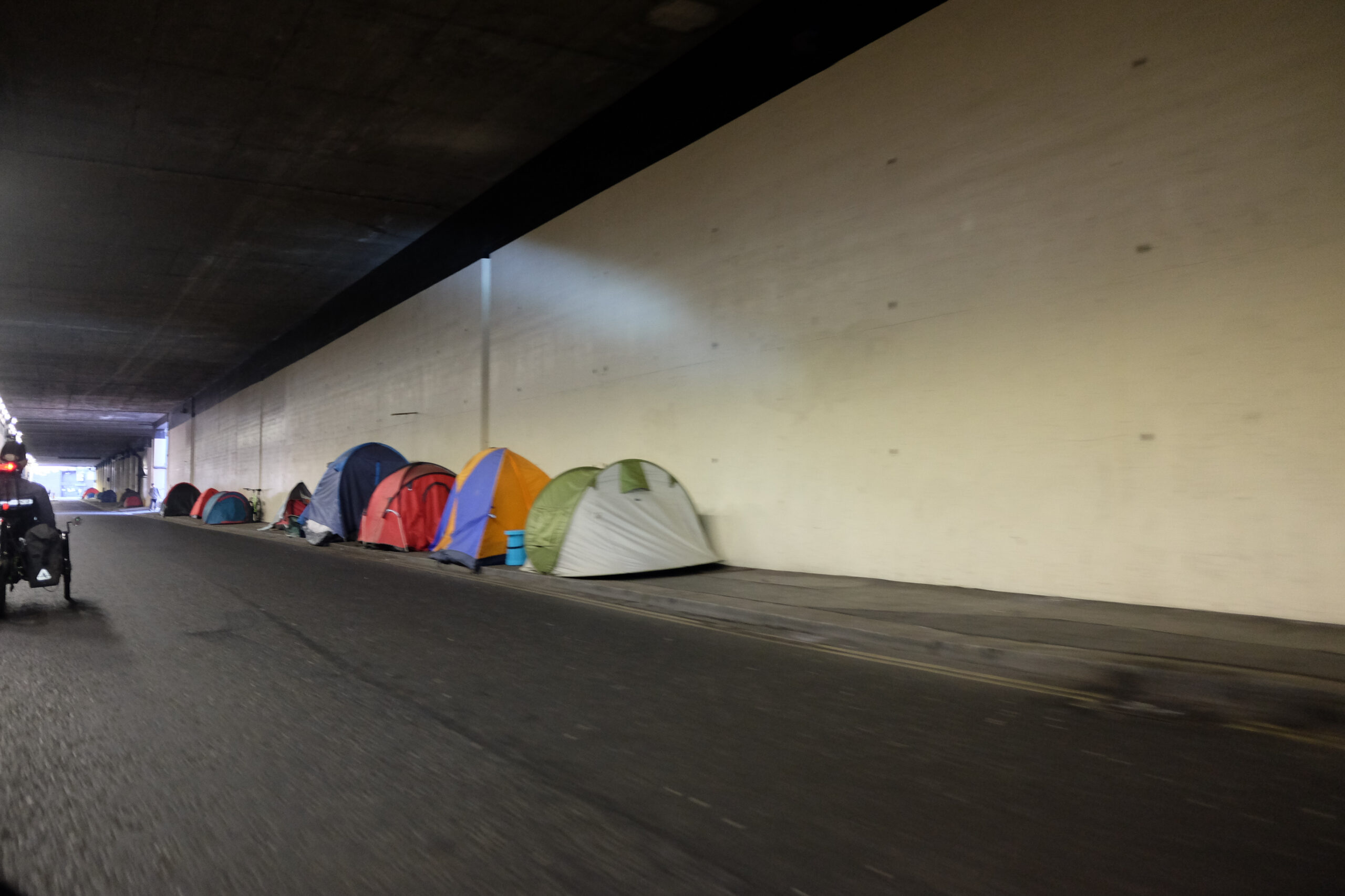We took a wrong turn – of course! – and ended up on a dead end route that put us into a tunnel where there was a small encampment of unhoused – homeless – people. I was surprised to see them; we’ve actually seen many more unhoused or mentally unwell people and addicts in Toronto than we have the whole time we’ve been travelling in the UK and Europe. That doesn’t mean they don’t exist, but our paths haven’t crossed, as they do when we ride downtown here in Toronto.)