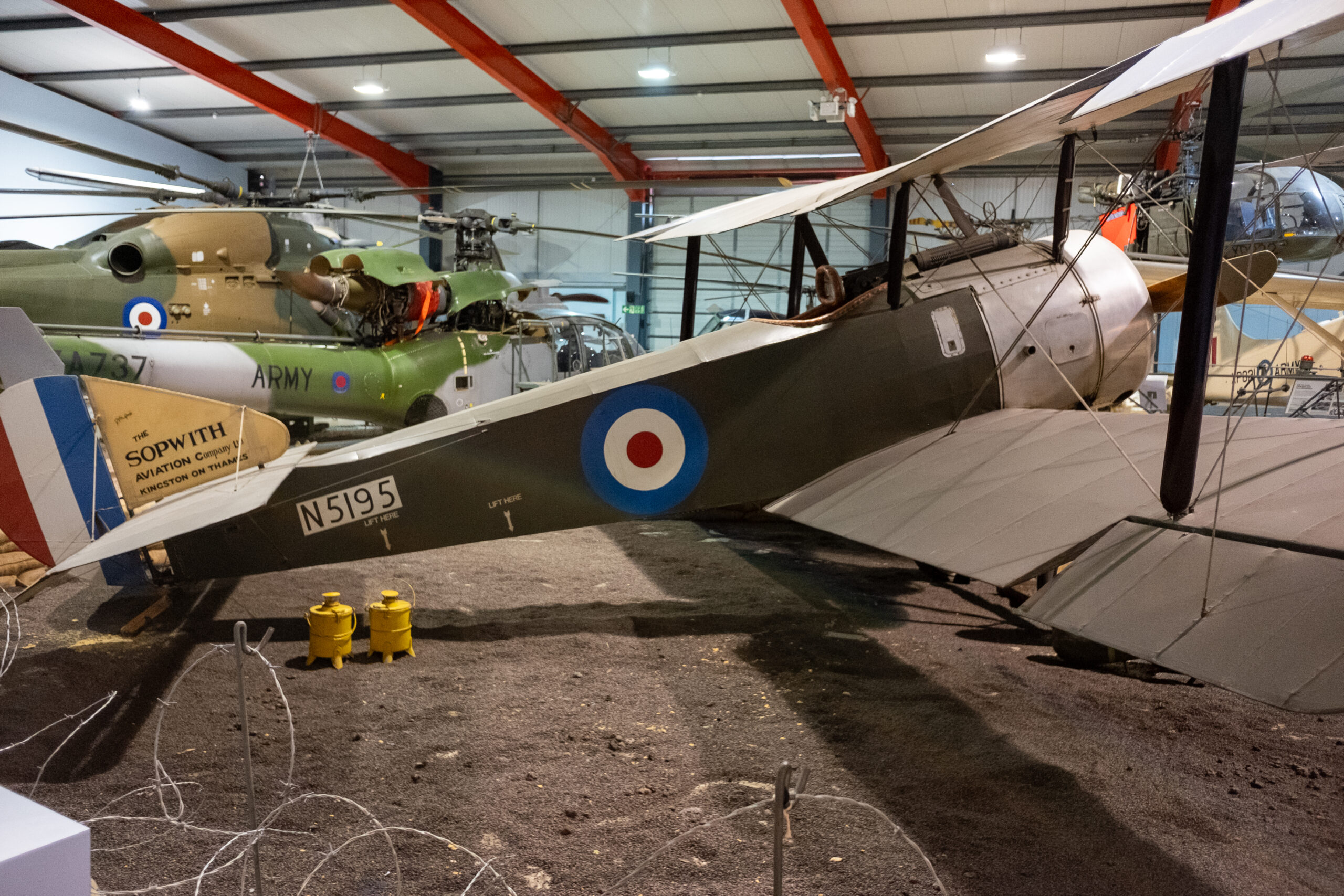 A tiny speck on our map showed something called the “Army Flying Museum” in “Middle Wallop”. We assumed that it would be a few disused aircraft on a deserted airfield. In other words, we didn’t have high hopes. Boy were we wrong. “The Museum holds an extensive collection charting over 100 years of the British Army in the air. With over 35 fixed wing and rotary aircraft on display, the Museum is the perfect place to explore the fascinating history of British Army aviation. Beginning in 1878 and continuing through to today, the collections cover the five main branches of Army Aviation: the Royal Engineers, the Royal Flying Corps, the Glider Pilot Regiment, Air Observation Post Squadrons, and the current Army Air Corps.”