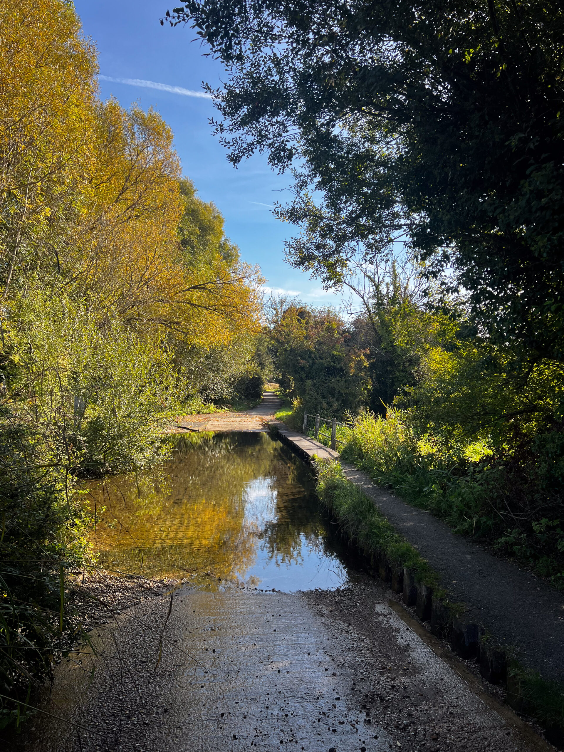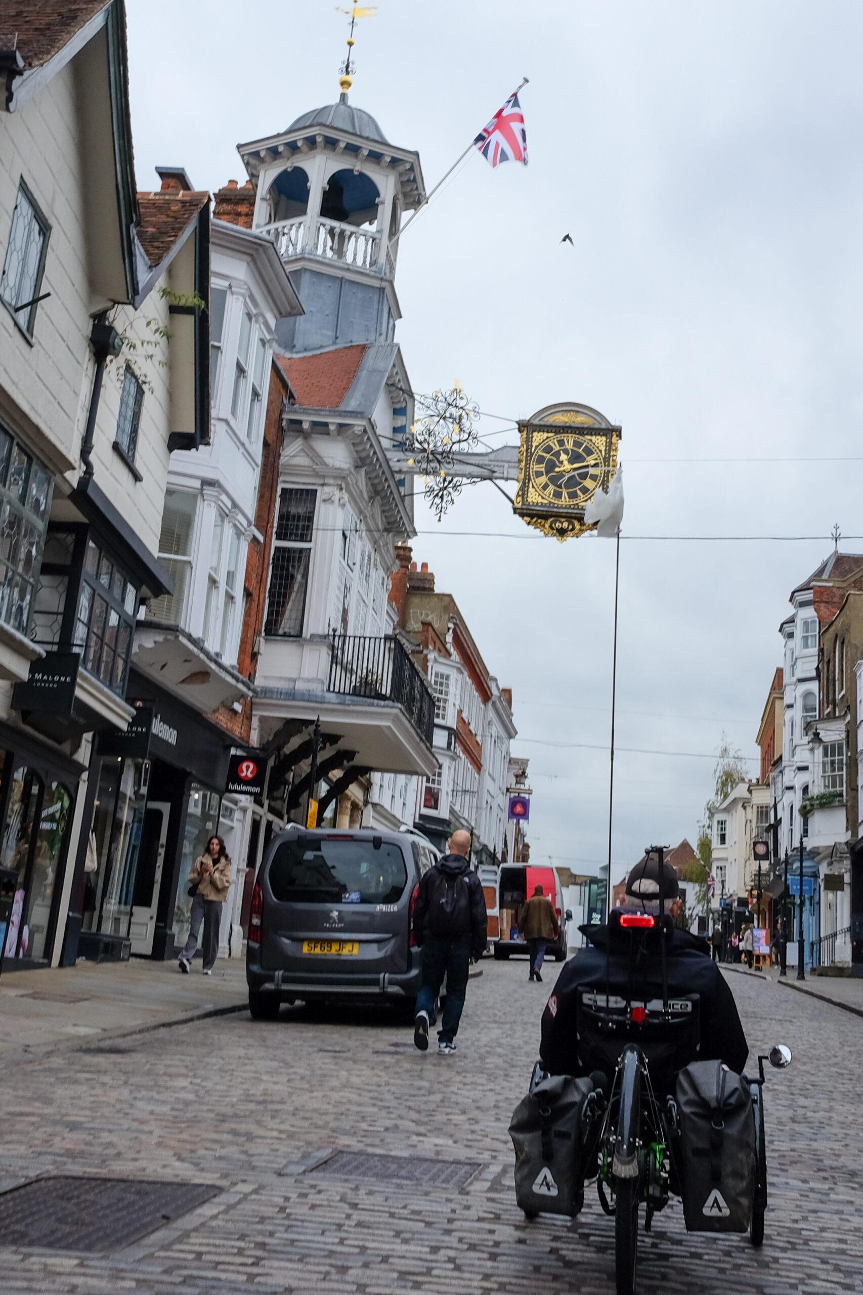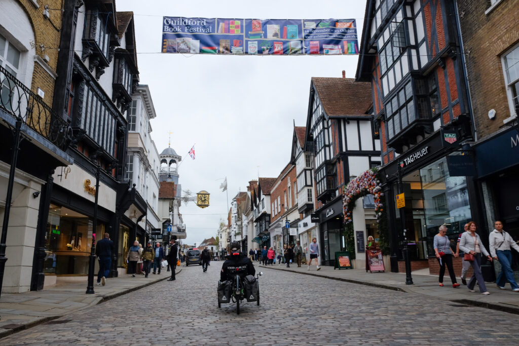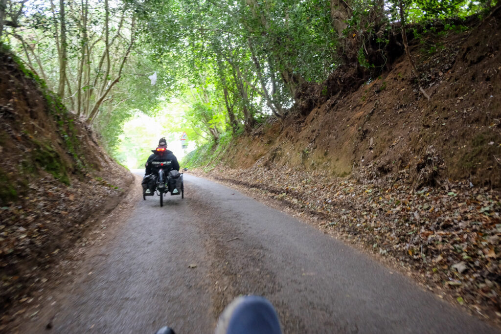 Thursday morning, the 24th, we pushed on to our next new destination, “Alton”, which Patti was delighted to learn was where Jane Austen lived with her beloved sister Cassandra, and from where she wrote six of her novels. We had great weather again! but the route was very wet. At one point we came to an impassable shallow creek (10″ that would have put our bottoms in the drink, and the bike path was too narrow for the wide front wheelbases of our trikes, so we did a re-route adding only a few kilometres to the route).