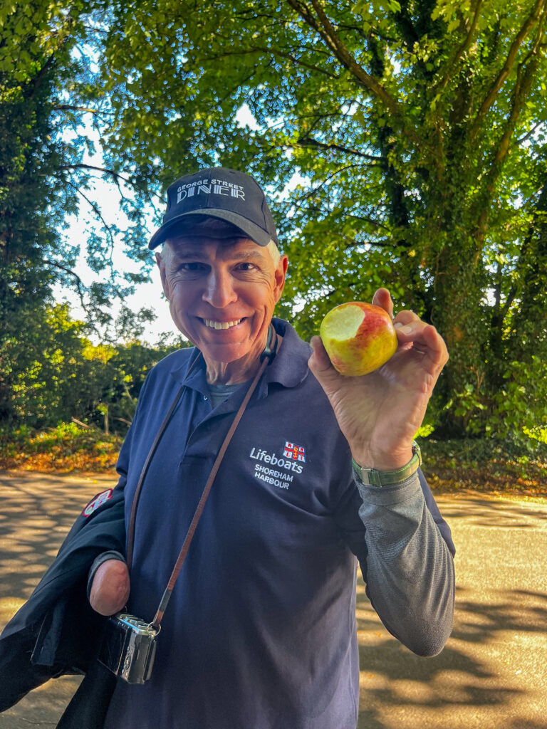 Walking back to the inn, we nabbed an apple from a bushel at the end of someone’s drive (free! delicious! see the photo!), meandered our way back through town, grabbed a pub meal and called it a night.